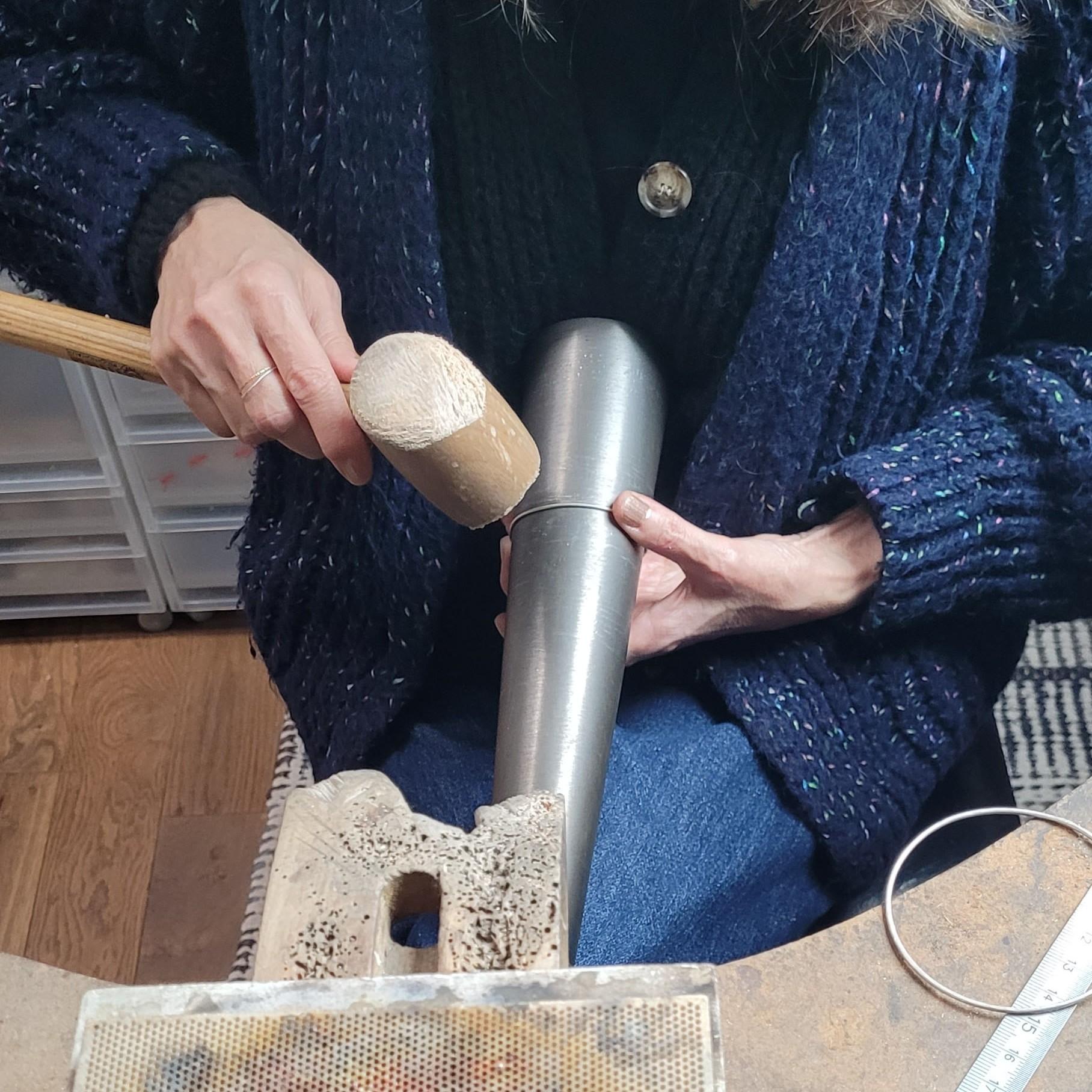 Pour se consacrer à sa passion et devenir bijoutière, Agnès suit des cours du soir pour acquérir les techniques de base et expérimenter le métal. Enrichie de cette expérience, avec l’idée d’une reconversion professionnelle en tête! Elle dirige sa démarche vers la création et suit une formation de bijouterie à l’ AFEDAP (Ecole de bijouterie) pendant 3 ans. Elle continuera à se former pour apprendre en effectuant plusieurs stages et notamment en réparation de bijoux une autre voix qui la passionne.En 1999, elle installe son atelier et débute son activité. Très rapidement elle participe à des salons professionnelles et publiques, des expositions. Elle diffuse ses créations elle-même et par l’intermédiaire de boutiques et de galeries. Agnès aime transmettre son savoir-faire à travers les ateliers.