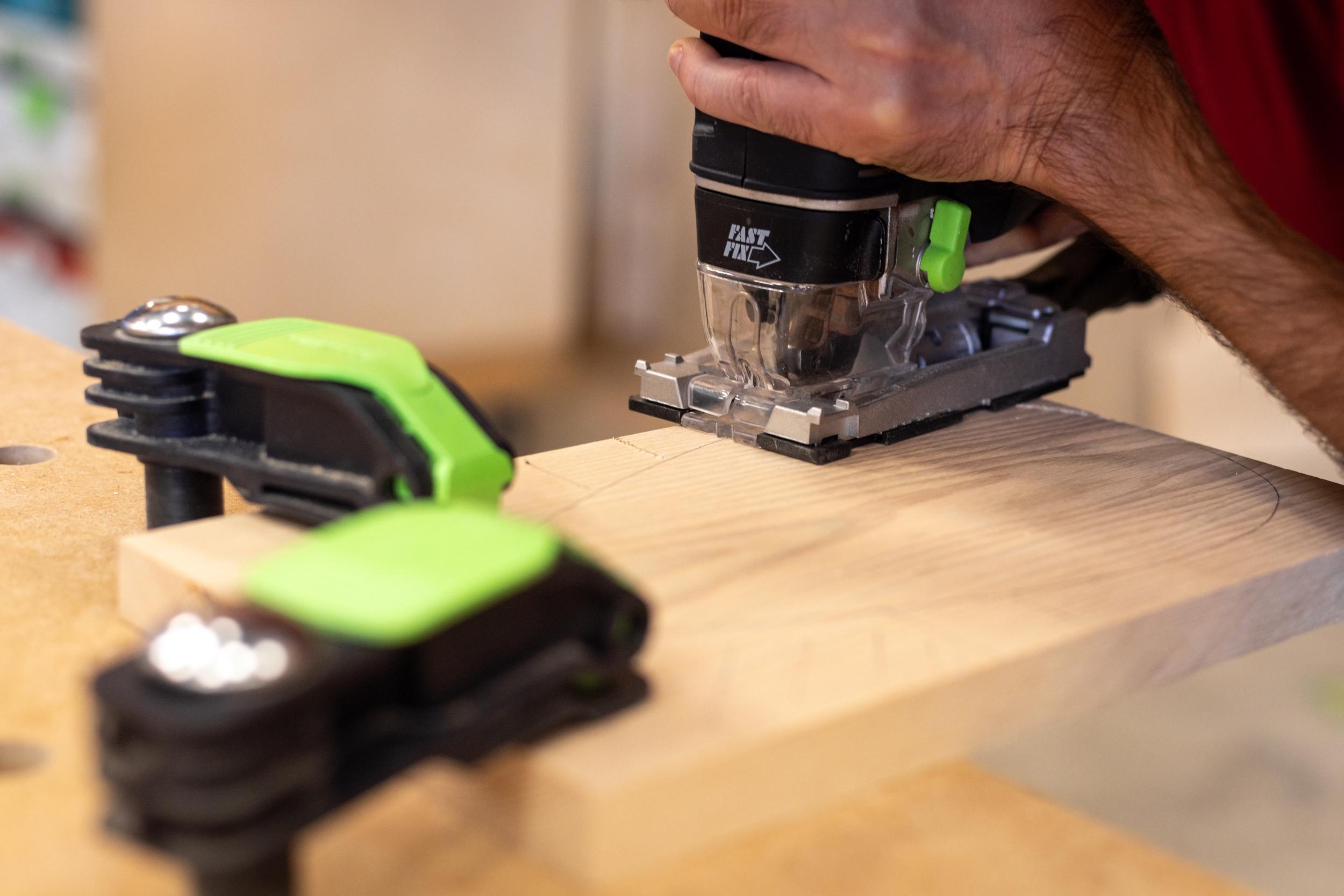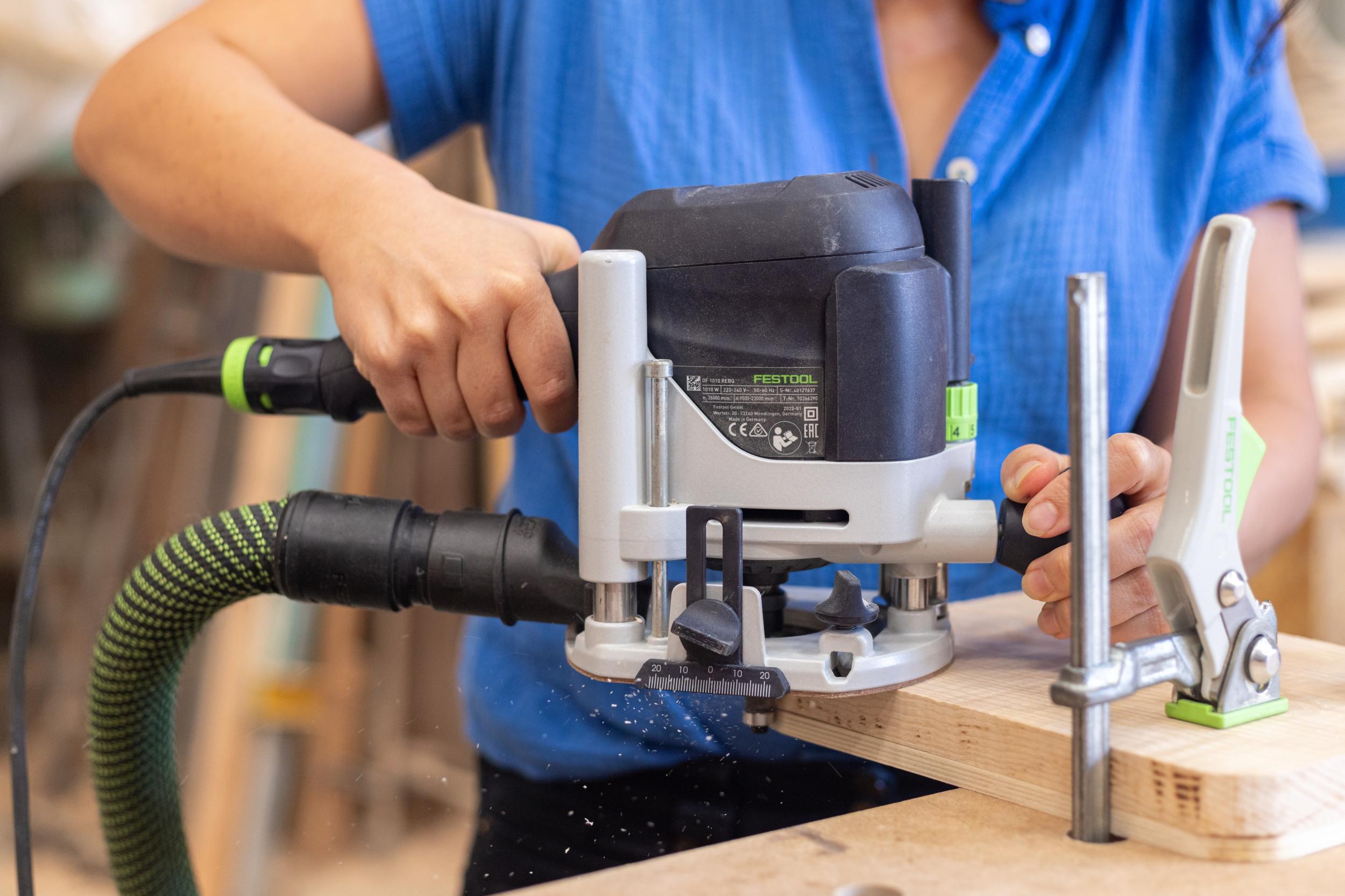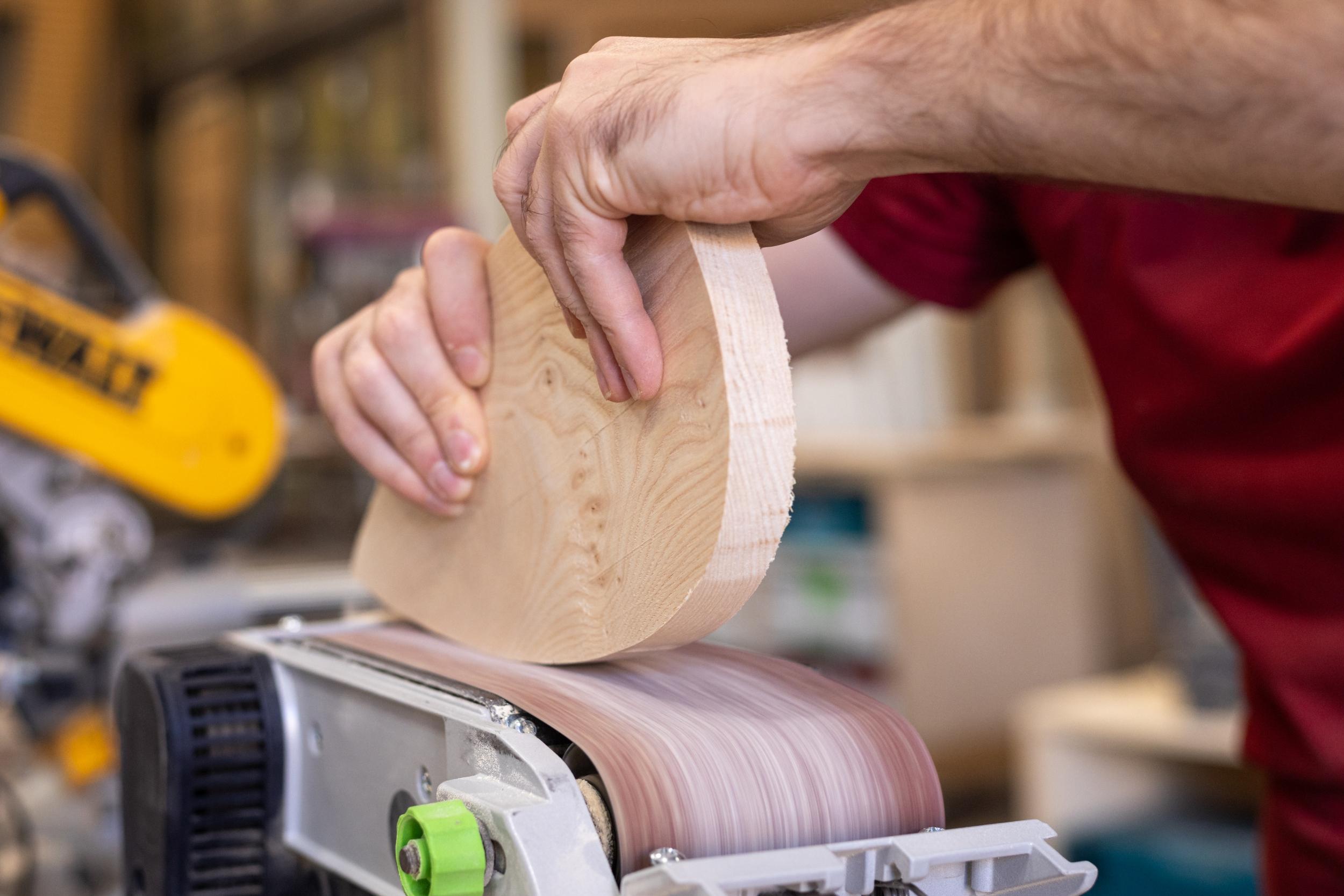 Fin 2021, Merlin s’installe dans un espace partagé avec sept autres artisans du bois. Le passionné dispose d’un espace personnel, au cœur d’un grand atelier commun équipé de machines stationnaires et de postes mobiles.