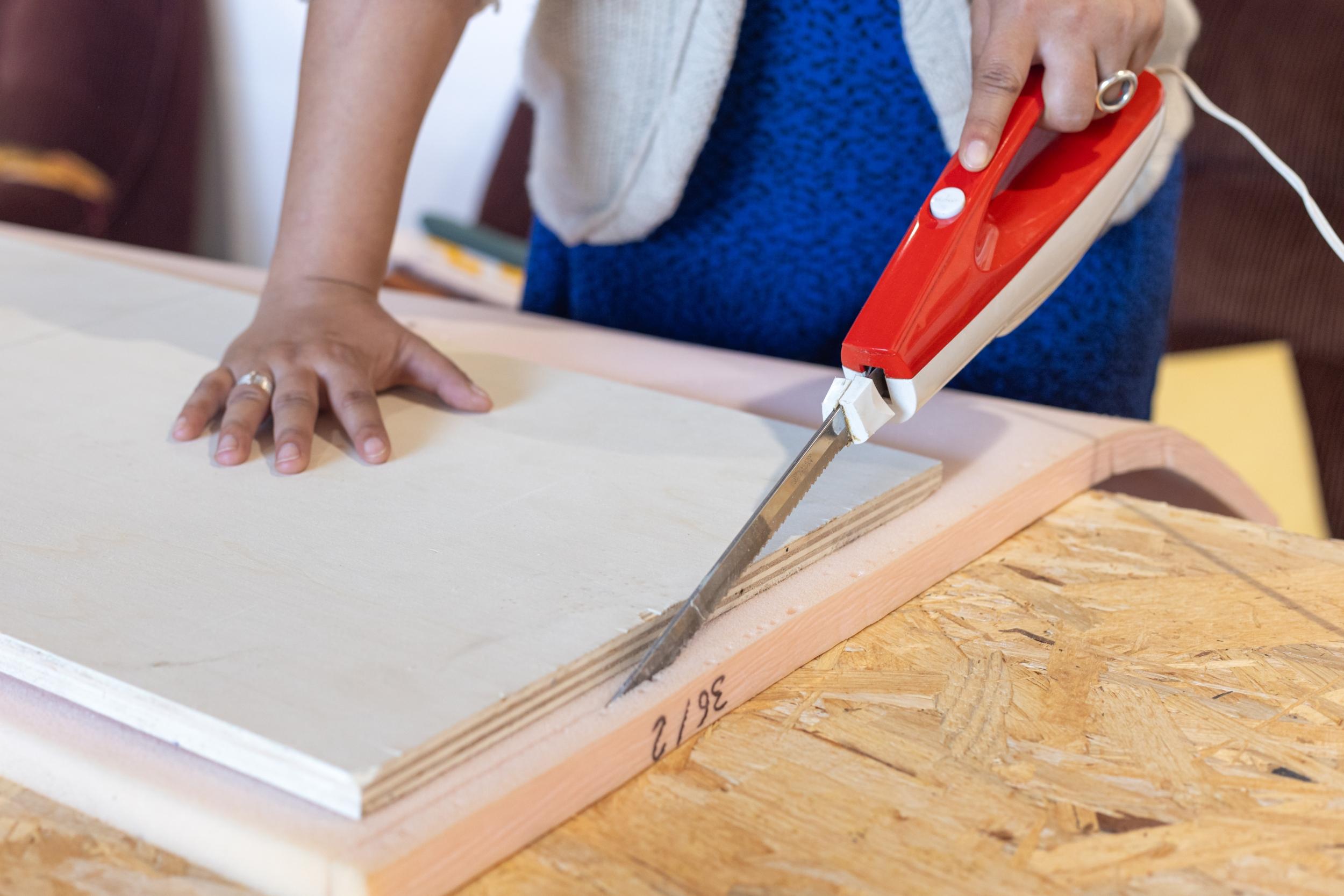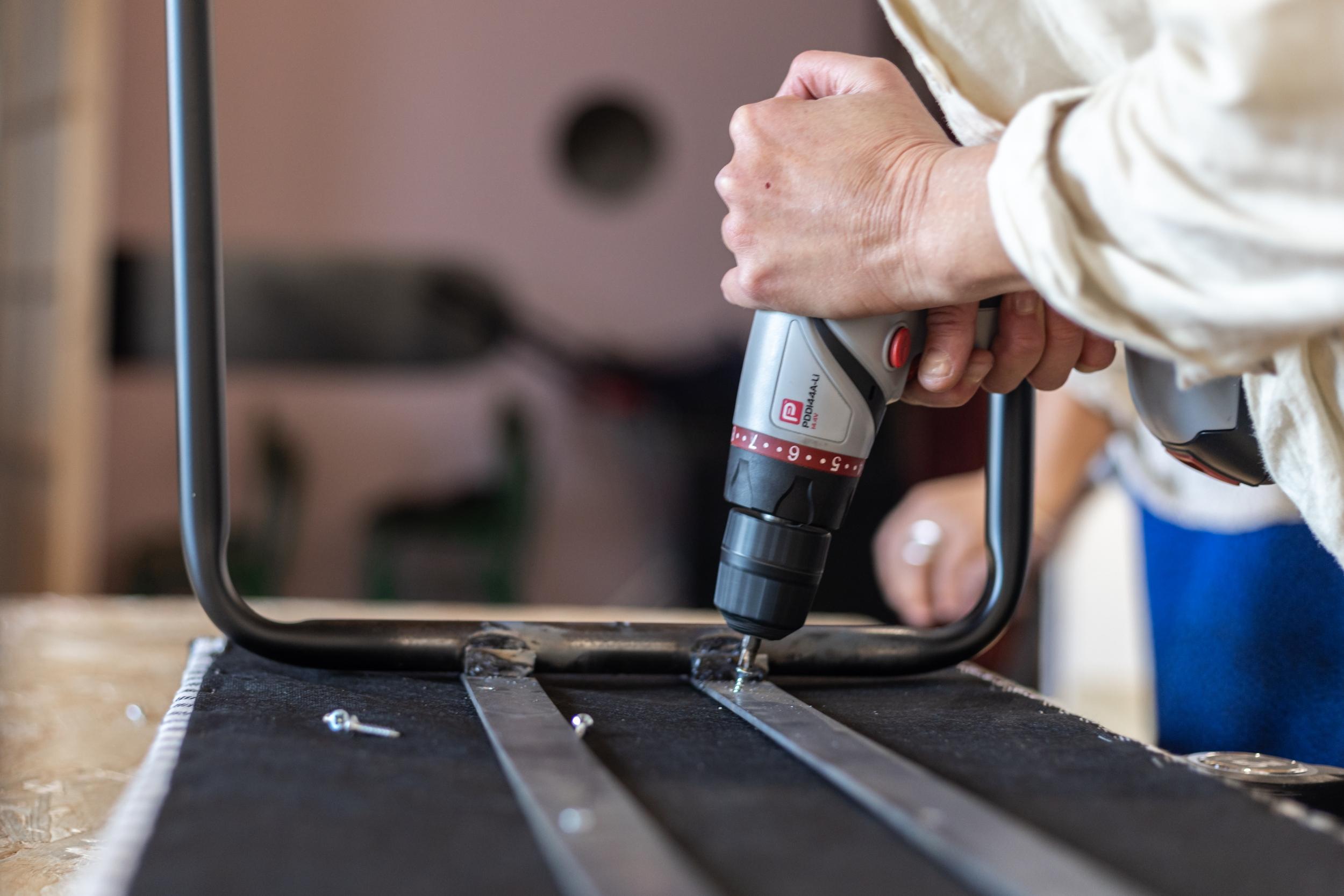 Installée à La Chiffonnerie, un atelier collectif sur la rive droite de Bordeaux, Sarah Pénicaud fabrique des bancs design entièrement faits main. Elle conçoit chaque pièce du début à la fin : découpe du bois, soudure du métal, pose de la mousse, tapisserie et finitions.