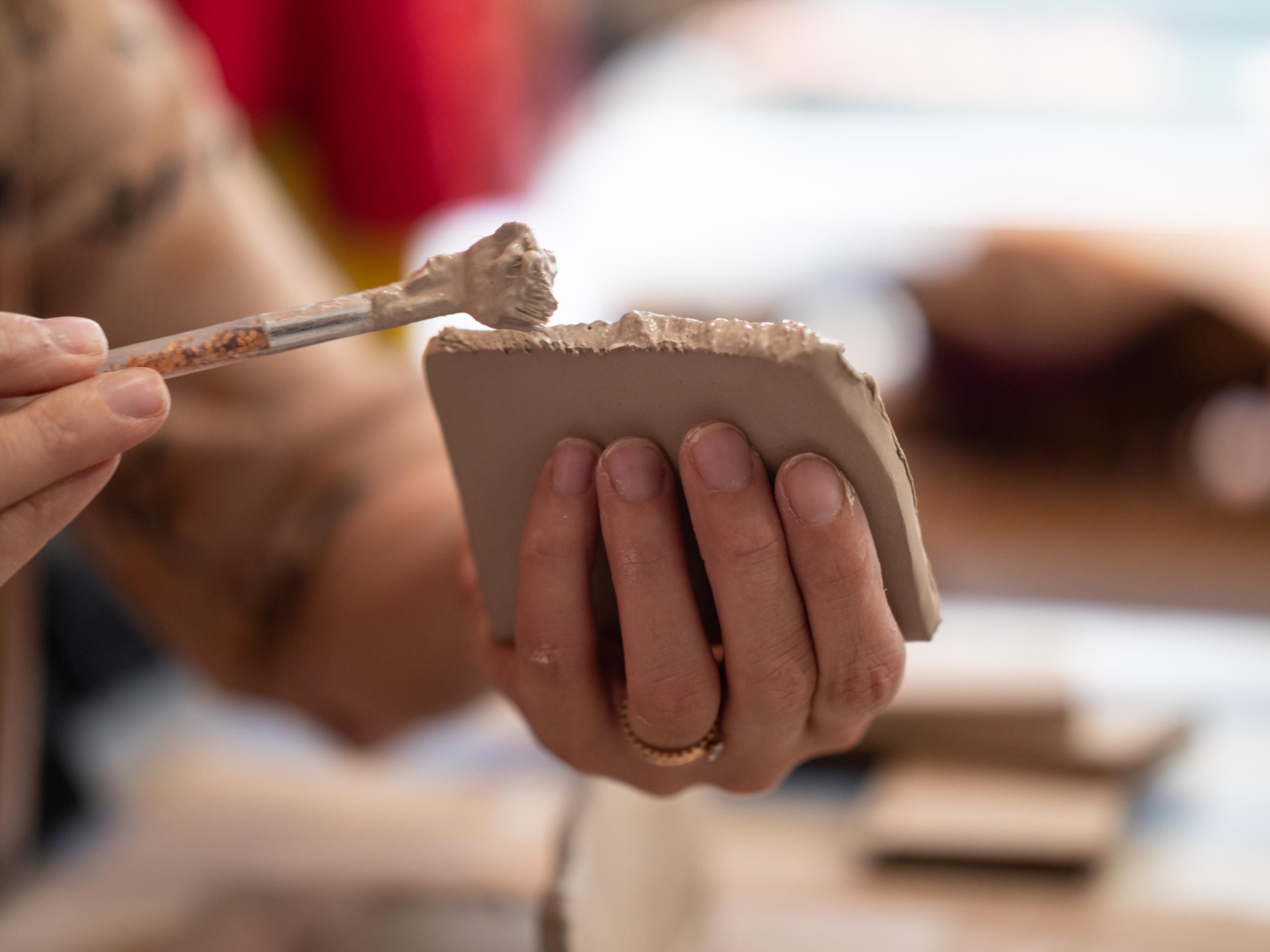 Elle décide un jour de se reconvertir dans la céramique, en apprenant le métier sur le terrain. Un stage chez une céramiste, puis une expérience au sein d’une boutique spécialisée en Bretagne confirment son attirance pour ce travail lent et tactile, où le geste dialogue avec la matière.