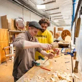 À travers ses ateliers, Chouki transmet sa passion pour la pratique de cet art ancestral et le travail du bois avec des outils traditionnels.