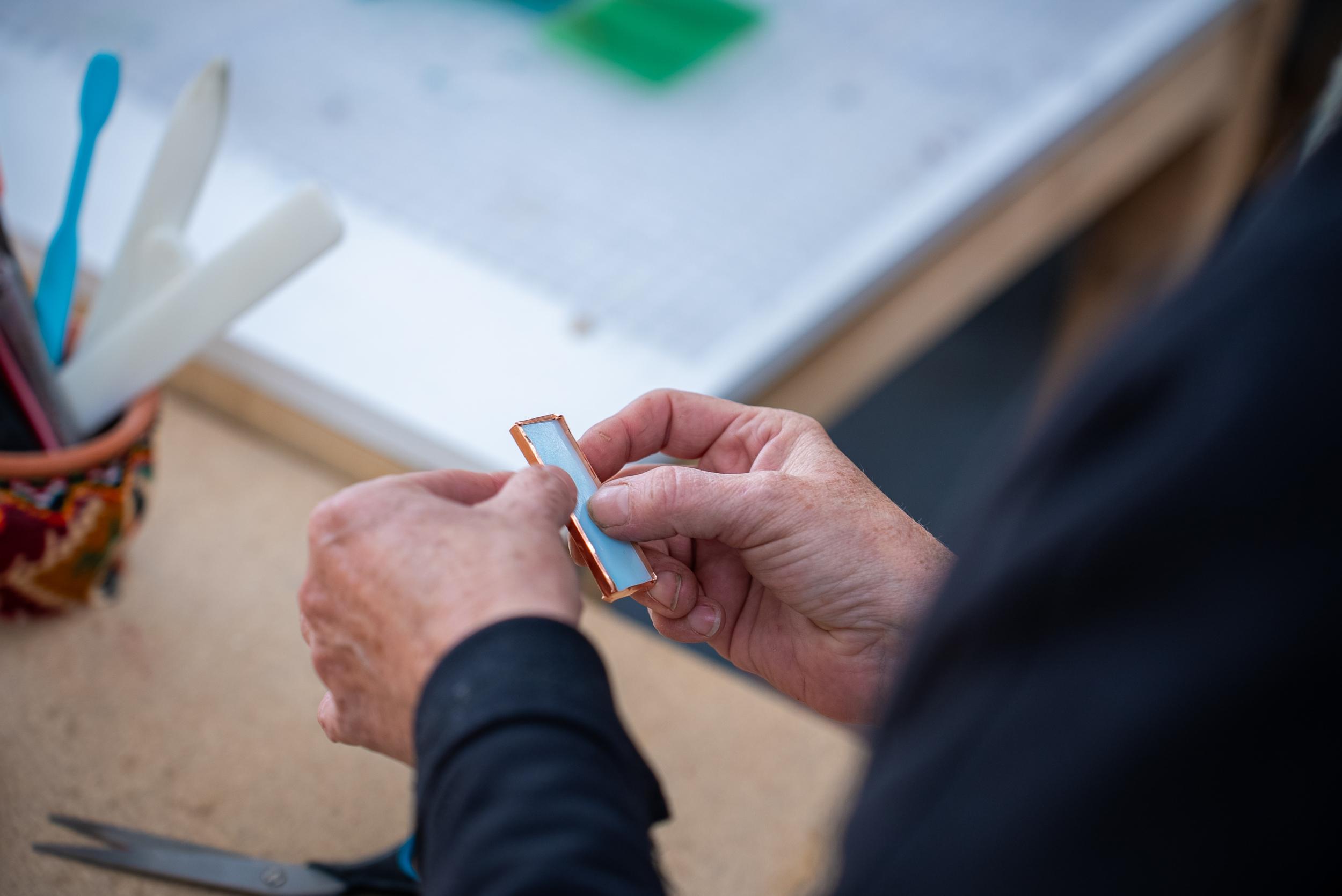 Autodidacte au départ, elle décide ensuite de passer son CAP vitrail pour perfectionner sa technique et approfondir sa compréhension du verre, un matériau aussi exigeant qu’inspirant. Car avec le verre, rien n’est jamais figé : chaque création est unique, impossible à reproduire à l’identique. C’est ce qui nourrit sa passion et son envie constante d’expérimenter, d’apprendre et d’échanger avec d’autres artisans verriers.