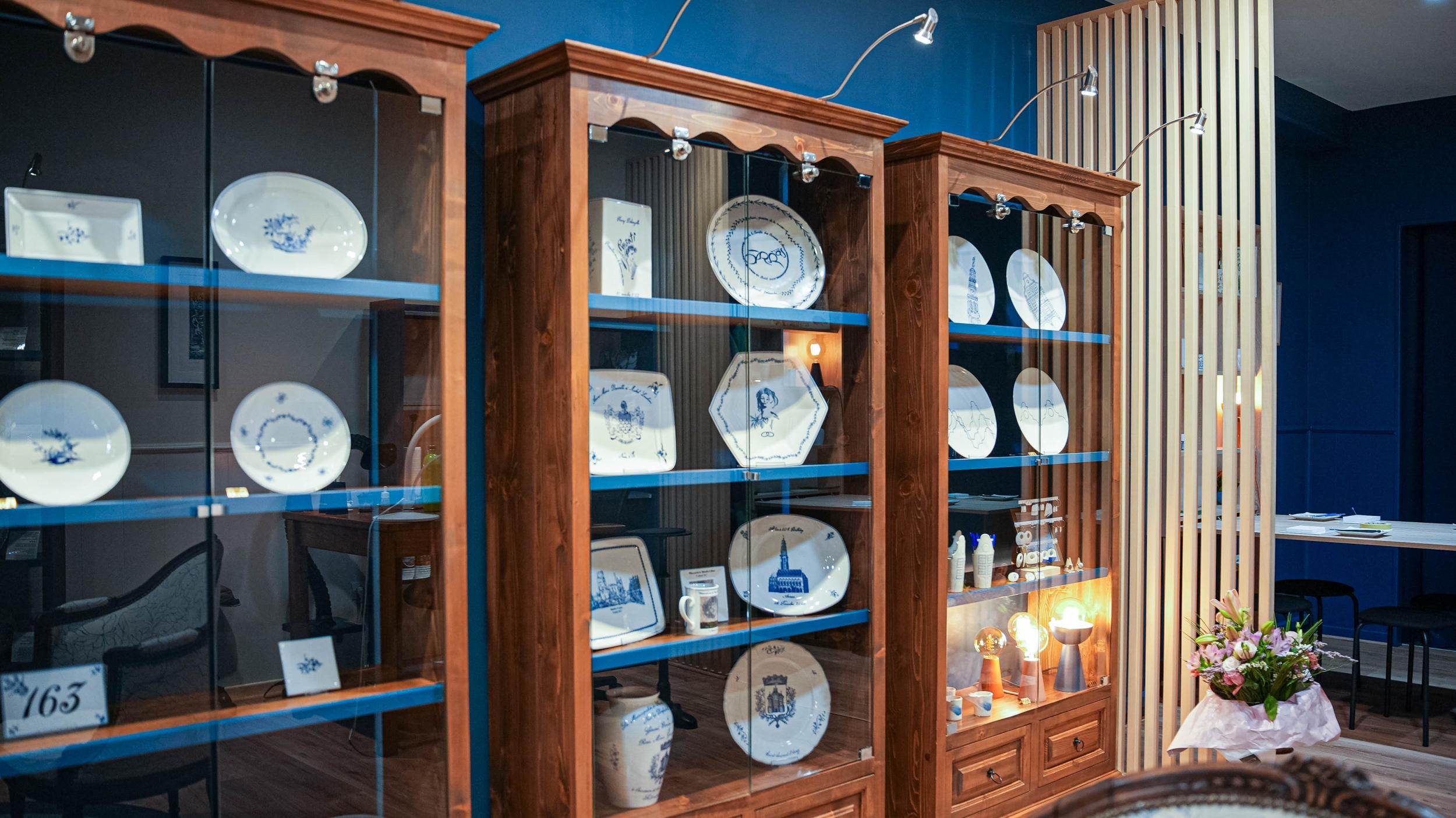 Formée par Christelle elle-même, Isabelle poursuit cette belle lignée d’artisans qui depuis le XVIIIᵉ siècle façonnent ces pièces uniques, d’un bleu profond obtenu grâce à la magie de l’oxyde de cobalt. Dans son atelier-boutique de 120 m², équipé de fours, de stocks de porcelaines venues de Limoges et d’outils anciens, elle reproduira les gestes d’autrefois : le tracé minutieux au normographe, les touches délicates au pinceau ou à la plume, la peinture à l’huile et aux oxydes avant la cuisson à très haute température.