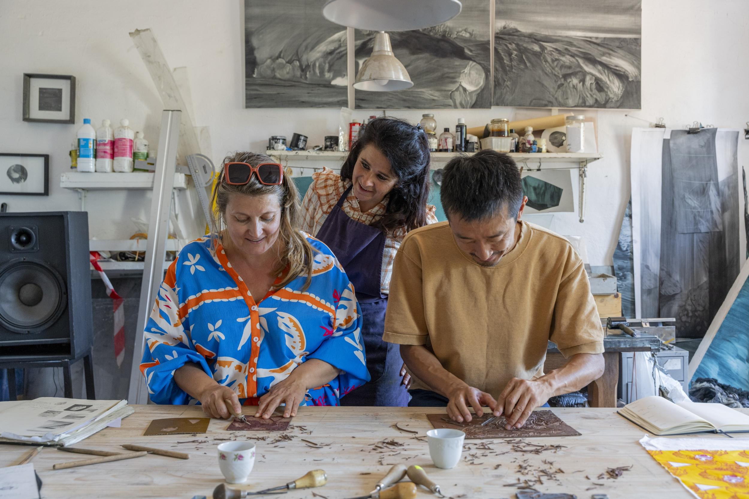 Sa curiosité et son goût pour la transmission l’ont menée jusqu’en Inde, où elle a étudié la gravure sur bois traditionnelle auprès d’artisans de Calcutta avant d’intégrer l’université Viswa-Bharati de Santiniketan en 2009. Elle y a vécu et travaillé pendant dix ans, immergée dans la richesse et le chaos du sous-continent. Cette expérience a profondément marqué son œuvre : ses images traduisent à la fois la vitalité des mégalopoles et les désordres urbains, environnementaux et humains qu’elle a observés.