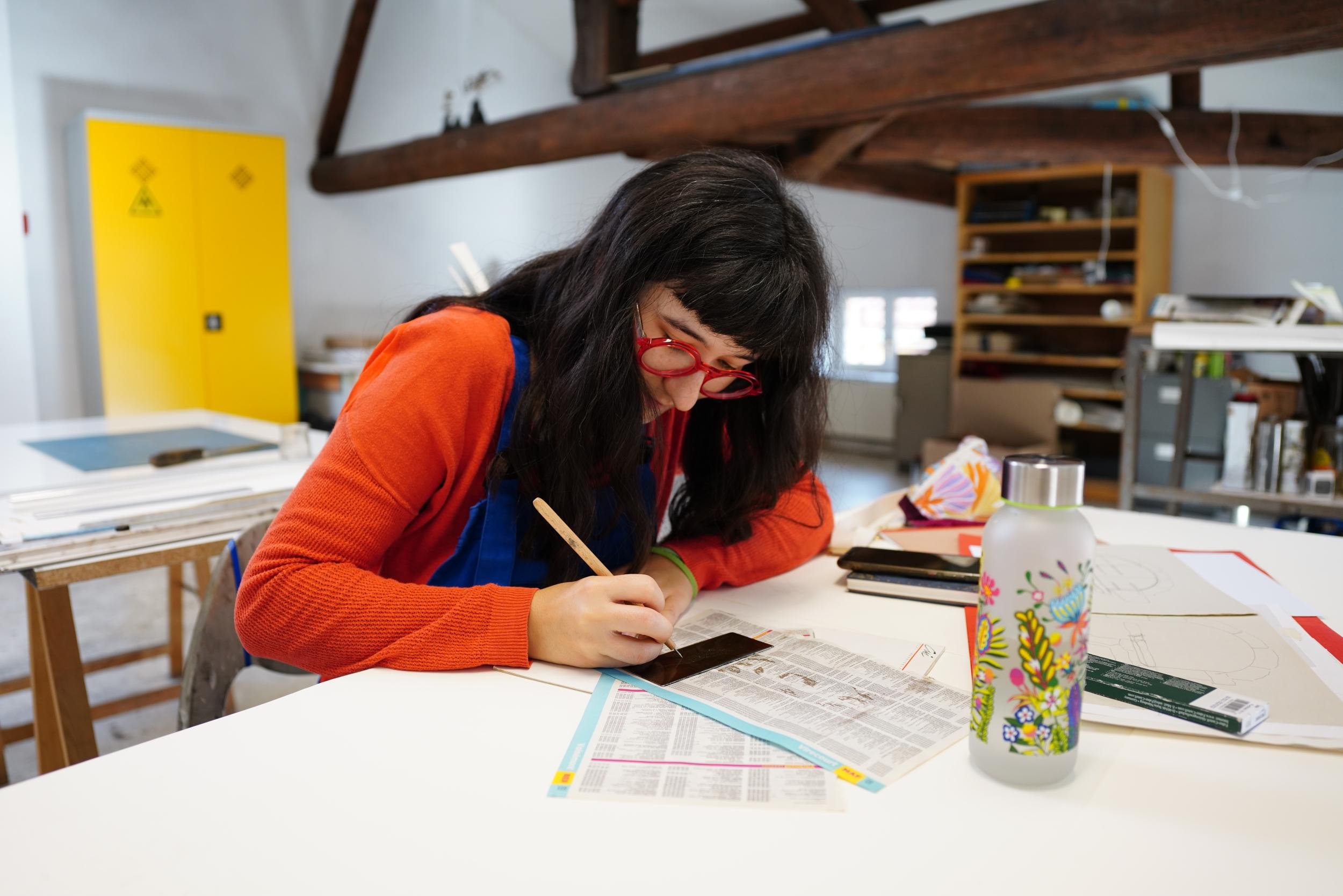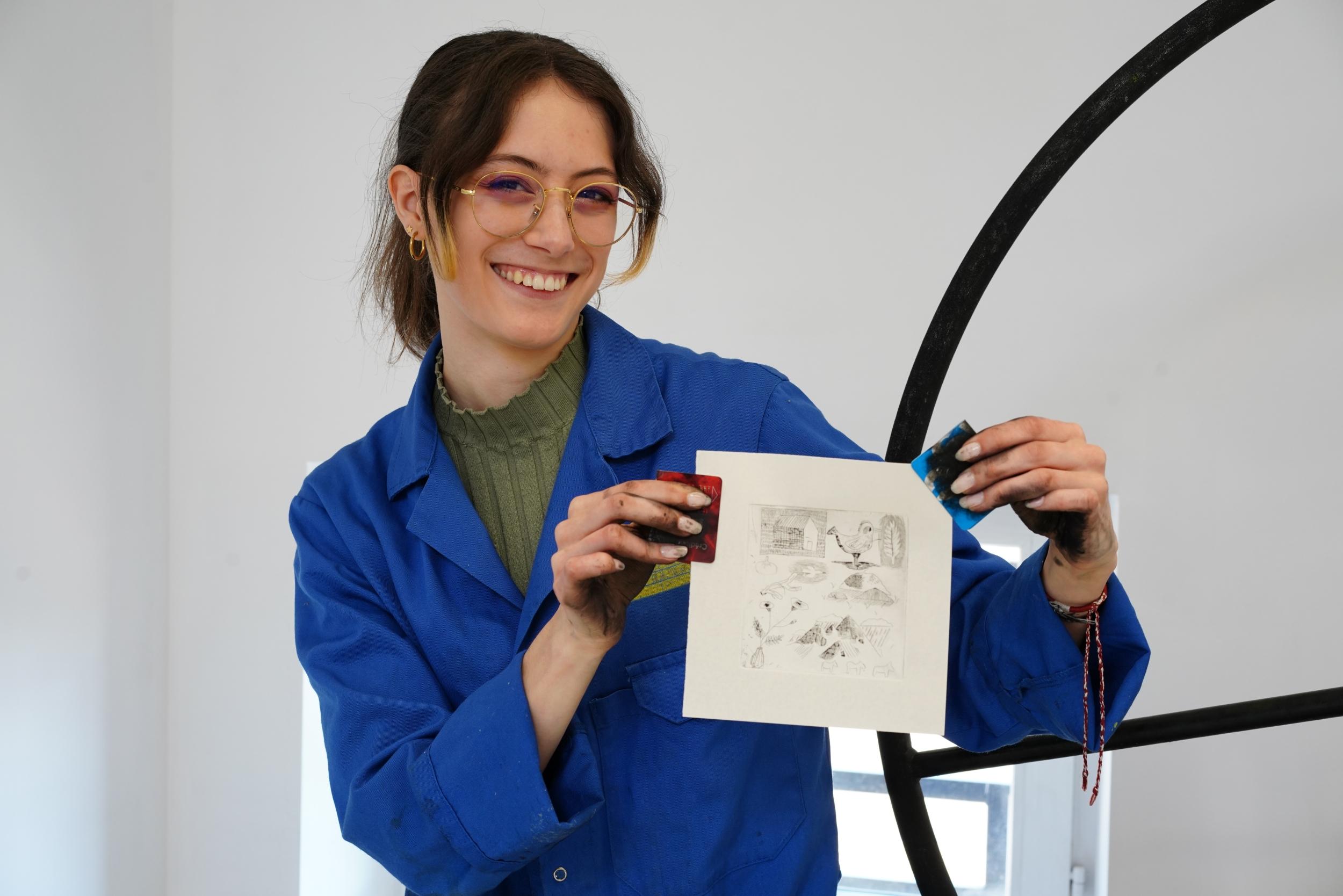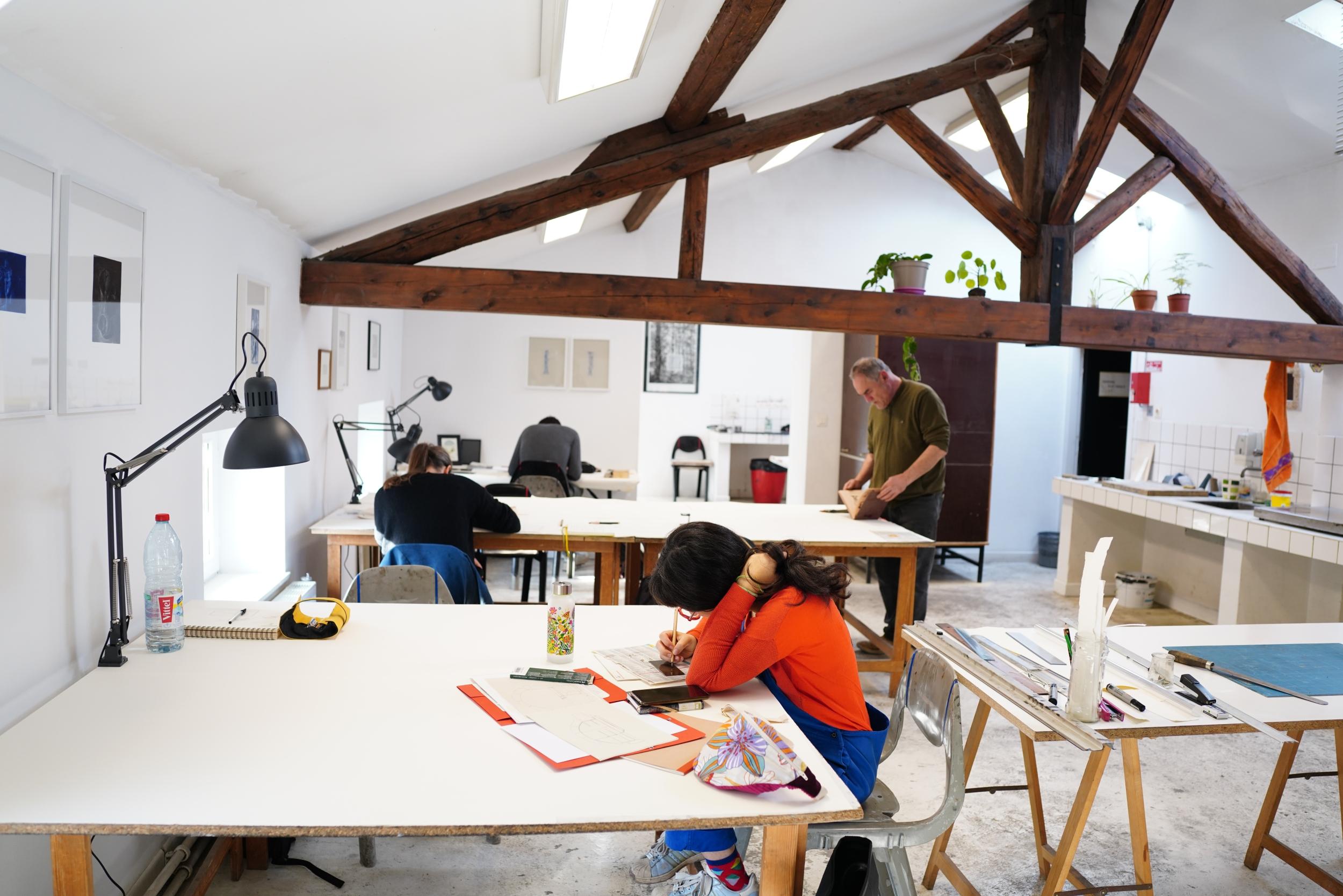 Ils sont quatre artistes à porter ce projet associatif : Youmi, Paul, Franc et Marina. Tous issus d’une formation aux Beaux-Arts, où ils ont obtenu un master, ils partagent un parcours artistique solide et une passion commune pour la gravure, qu’ils pratiquent et explorent depuis de nombreuses années. Leur rencontre s’est faite de manière assez spontanée, autour du sport. Très vite, ils réalisent qu’ils sont tous artistes et que leurs univers, bien que différents, se rejoignent dans le goût de l’expérimentation et du travail de la matière. De cette coïncidence est née l’idée de créer un partenariat, puis de structurer leur collaboration au sein d’une association. Chacun apporte aujourd’hui son expertise au collectif. Youmi, doctorante en peinture, enrichit les ateliers par sa réflexion théorique et sa pratique picturale. Franc, fort de plus de vingt ans d’expérience dans l’enseignement de la gravure, transmet un savoir-faire précis et exigeant. Paul et Marina complètent l’équipe par leurs pratiques artistiques et leur approche expérimentale de la gravure. Ils proposent ensemble des ateliers de gravure, pensés comme des temps de découverte, de pratique et de partage. Ces sessions s’adressent à tous ceux qui souhaitent explorer les techniques de la gravure, bénéficier d’un accompagnement attentif et profiter de l’expérience croisée de quatre artistes aux parcours complémentaires !