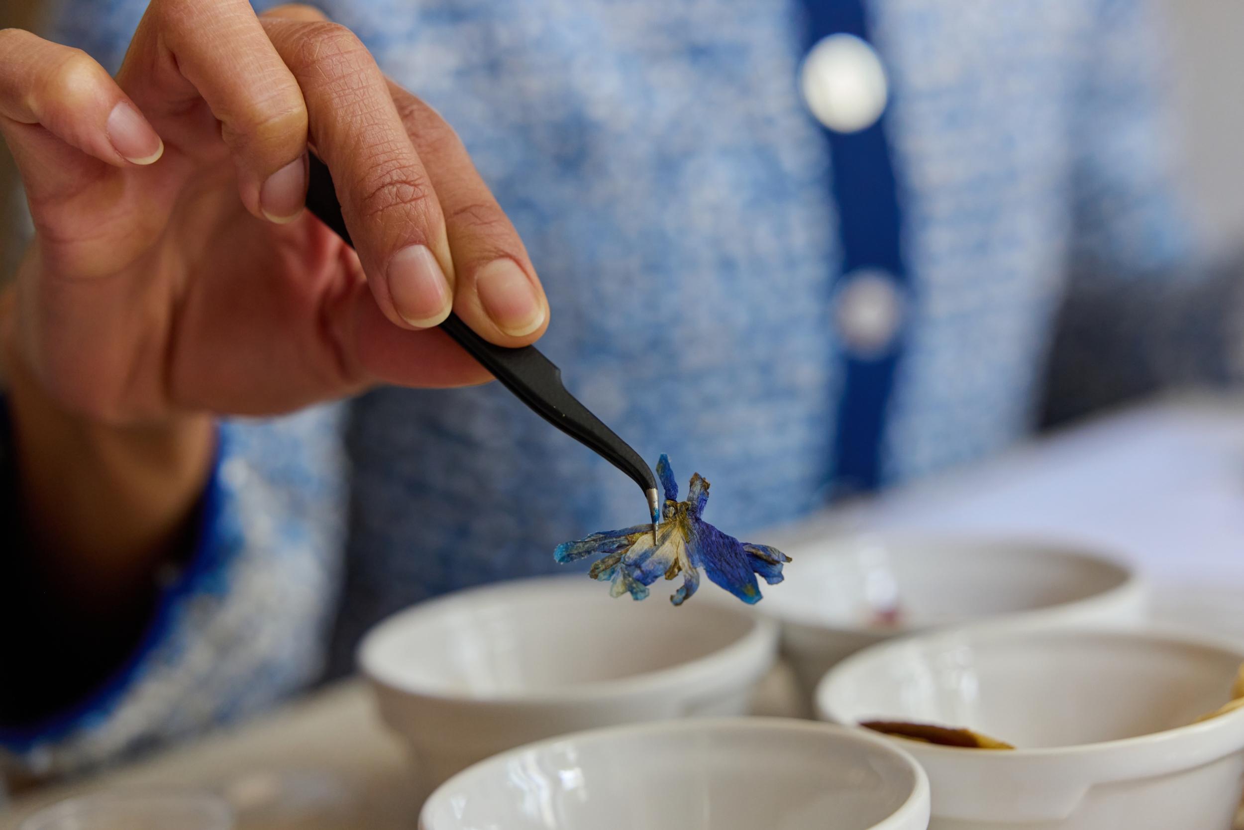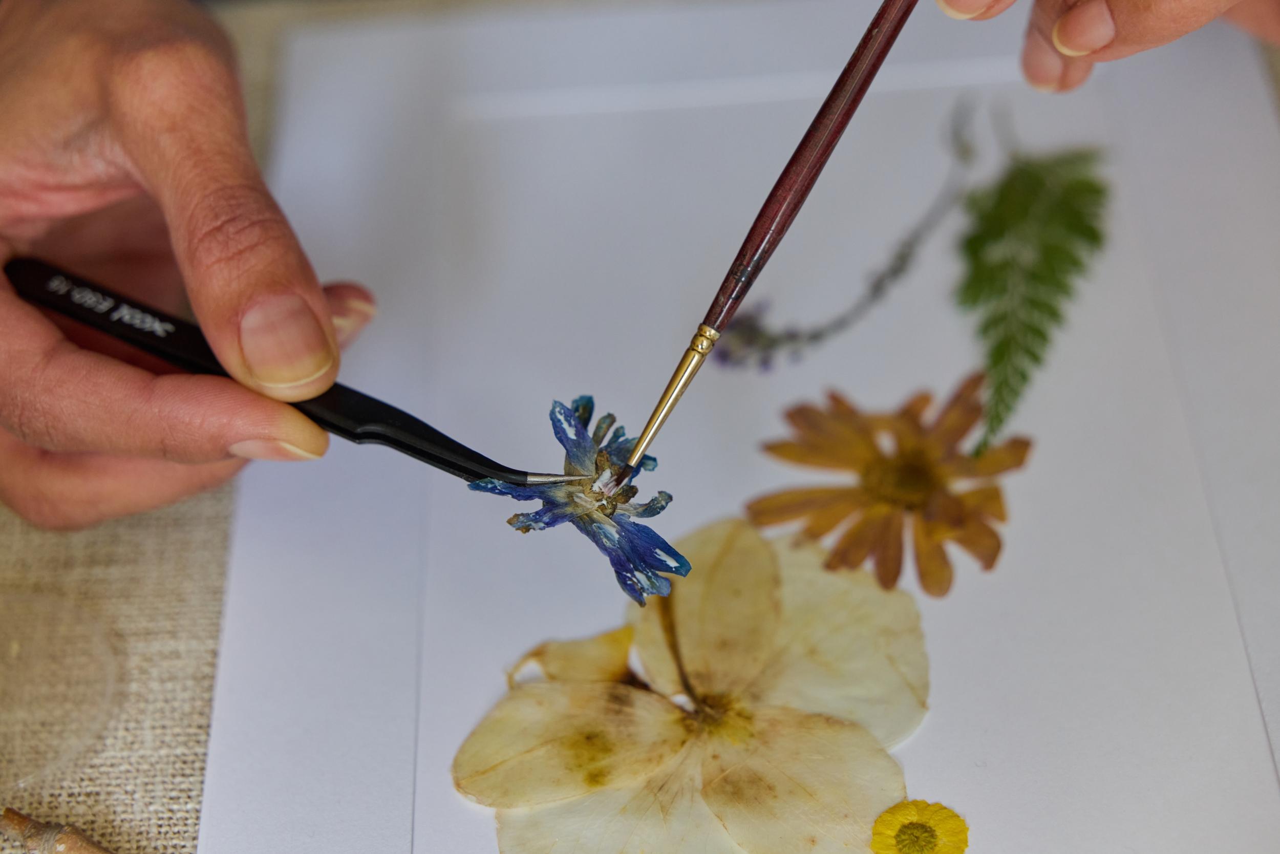 Porteuses de messages silencieux, ces fleurs sont rarement conservées. L'artisane choisit alors d’en prolonger l’éclat et la symbolique en développant un savoir-faire unique autour des pétales fanés.
