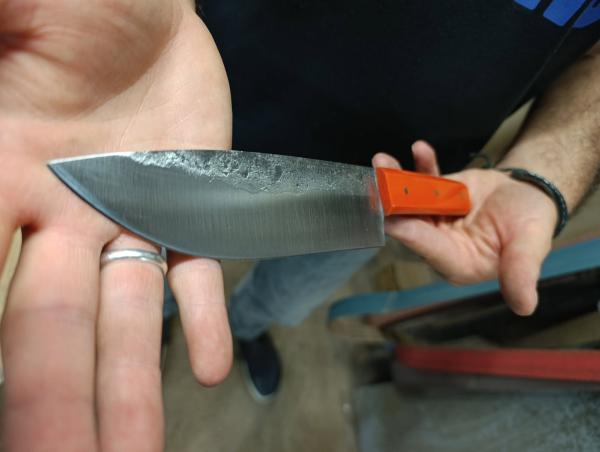 Un grand merci à Armel pour cette journée très intéressante. Il est passionné par son métier et sait transmettre son savoir. Merci pour sa patience face à mes maladresses de débutant. Je suis fier de mon couteau personnalisé par toutes mes multiples erreurs de la journée. Je ne regarderai plus les couteaux artisanaux de la même façon, sachant les nombreuses étapes nécessaires à leur confection. Je garde en souvenir une belle ampoule !!!!