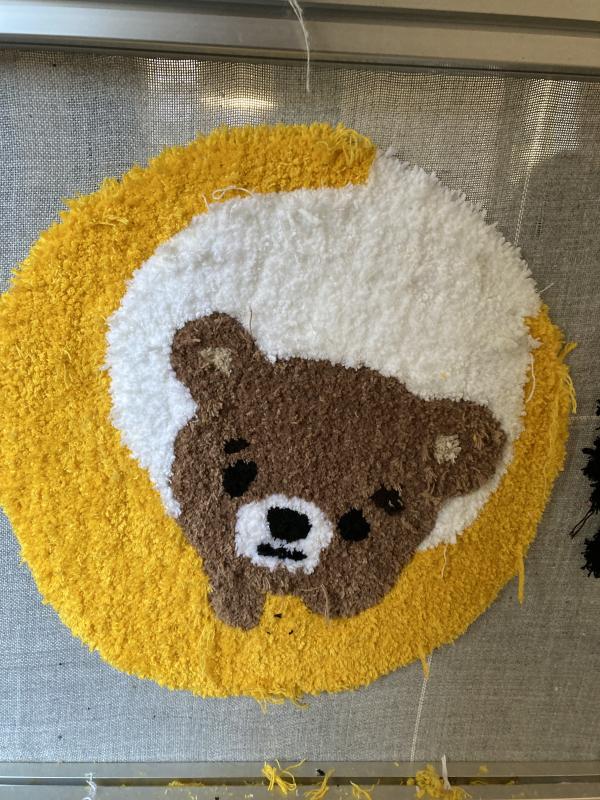 Une expérience très sympathique où grâce au pistolet à tufter, on dégaine la laine plus vite que son ombre 😂. Merci à Leonie et David d avoir pris le temps de préparer un visuel répondant à mes attentes et de m avoir aidé à lui donner vie. Hâte de le voir finaliser