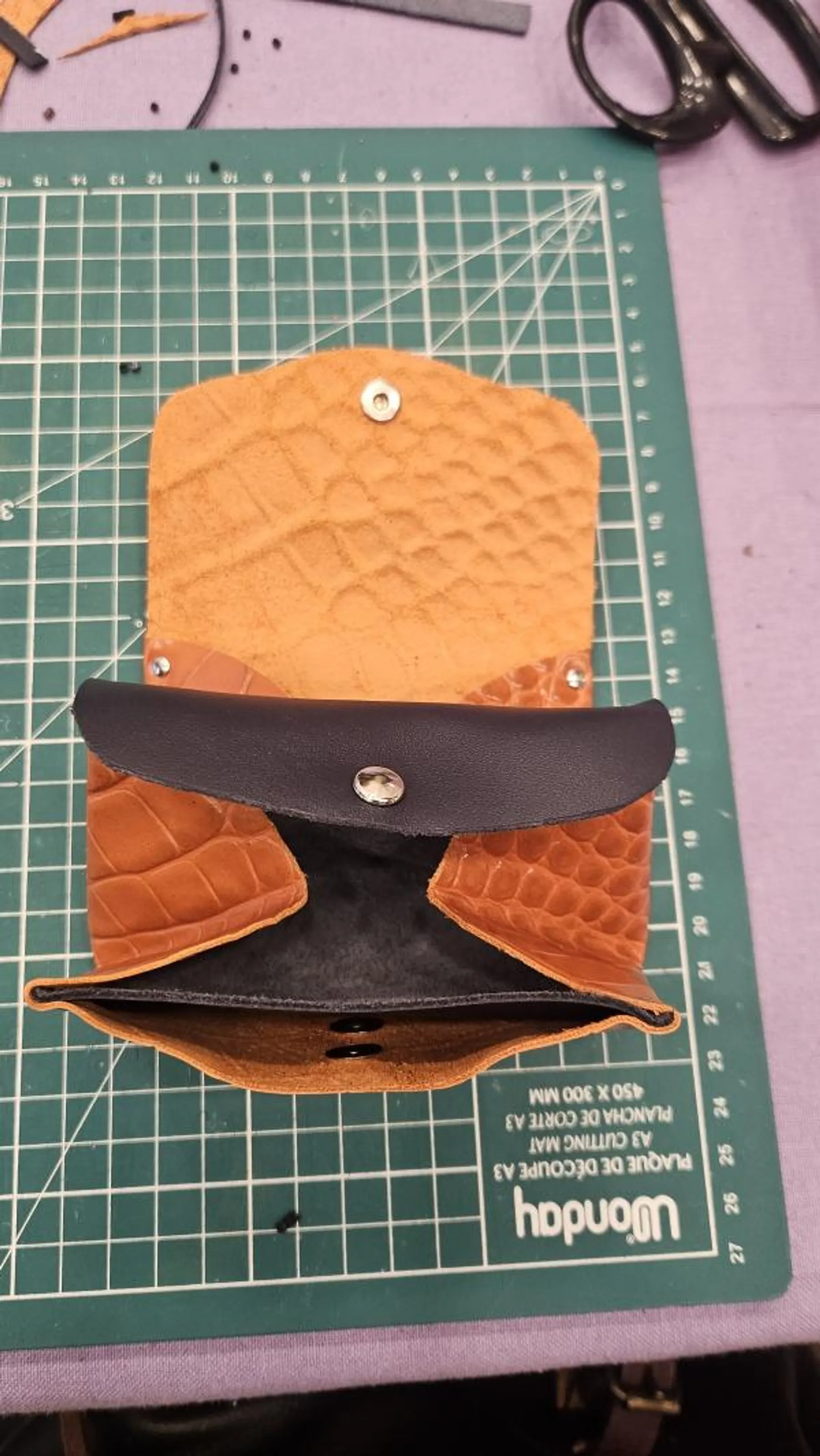 • Fabrication du porte-monnaie : guidé pas à pas, réalisez toutes les étapes de fabrication : traçage du patron, poinçonnage du cuir, pose de la bijouterie puis assemblage final. Observez votre création prendre forme sous vos doigts.