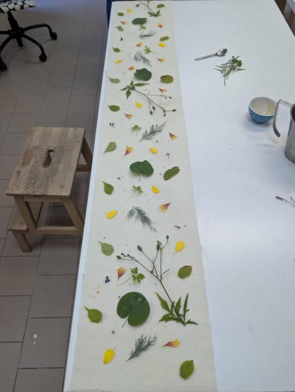 Lors de cet atelier, vous explorerez le pouvoir tinctorial des plantes et leur capacité à laisser une empreinte sur différents supports comme une écharpe en soie ou une pièce de lin.