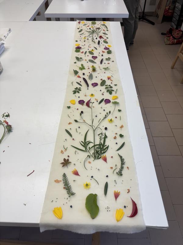 Après un accueil chaleureux, l'artisane commencera par vous proposer une introduction théorique à son savoir-faire. Vous pourrez ensuite choisir parmi les pièces fournies (foulards, étoles, pièces en laine, soie ou lin) ou apporter la vôtre pour la transformer à l’aide d'impressions végétales.