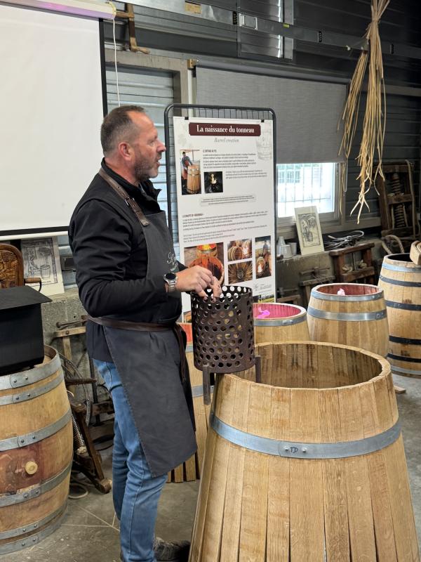 Plongez dans l'univers du vin en découvrant la tonnellerie et dégustez du délicieux vin avec Frédéric, artisan tonnelier