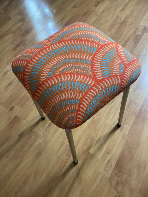 Et voilà le travail : vous avez redonné vie à un tabouret vintage ! Vous repartirez de l'atelier avec votre nouveau tabouret préféré, et la fierté de l'avoir tapissé vous-même.