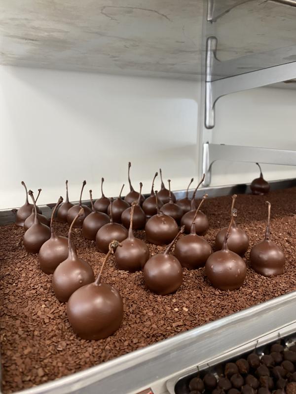 Plongez dans un tourbillon de chocolat et de cerises en confectionnant vos savoureuses guinettes bordelaises avec Nathalie, chef d'orchestre de la chocolaterie.