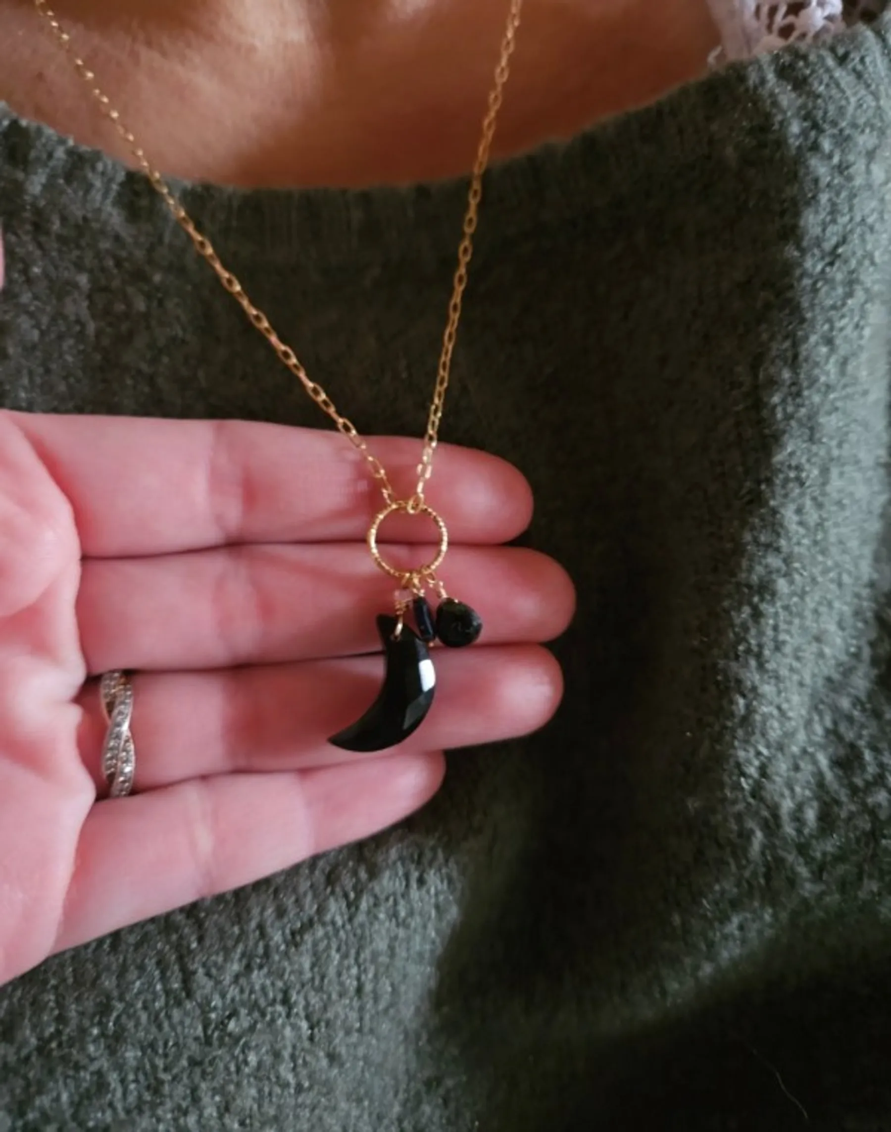 La créatrice vous guidera à travers un voyage unique et intime, vous aidant à choisir le design de votre collier (collier en argent, en argent plaqué or 18k, pendentif et pampilles) et à sélectionner le type de pierre qui vous conviendra le mieux. Vous aurez le choix parmi une large variété de pierres, selon la vibration que vous souhaiterez donner à votre bijou grâce à la lithothérapie.