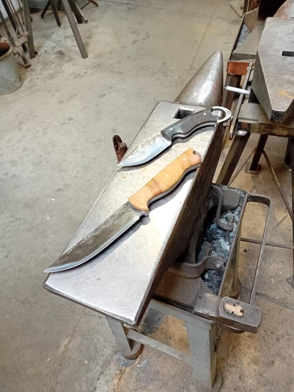 Bonjour, j'ai eu l'occasion de participer à cet atelier les 28 et 29/08/23 et je tenais à remercier Robin pour sa gentillesse, la clarté de ses explications, sa guidance et son savoir-faire impressionnant pour un professionnel si jeune et tellement expérimenté. J'ai pu vraiment fabriquer un couteau exactement tel que je l'avais pensé !! Deux photos montrant le cheminement depuis la sortie de la forge jusqu'à la finition.