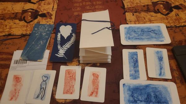 Deux belles découvertes : le cyanotype et la gravure sur tetrapack. Merci Caroline! Grâce à tout ton matériel préparé et surtout grâce à ton savoir-faire que tu aimes partager, j'ai passé un excellent moment. Tu nous laisses expérimenter et tu nous conseilles et encourages dans nos premiers pas. Cécile
