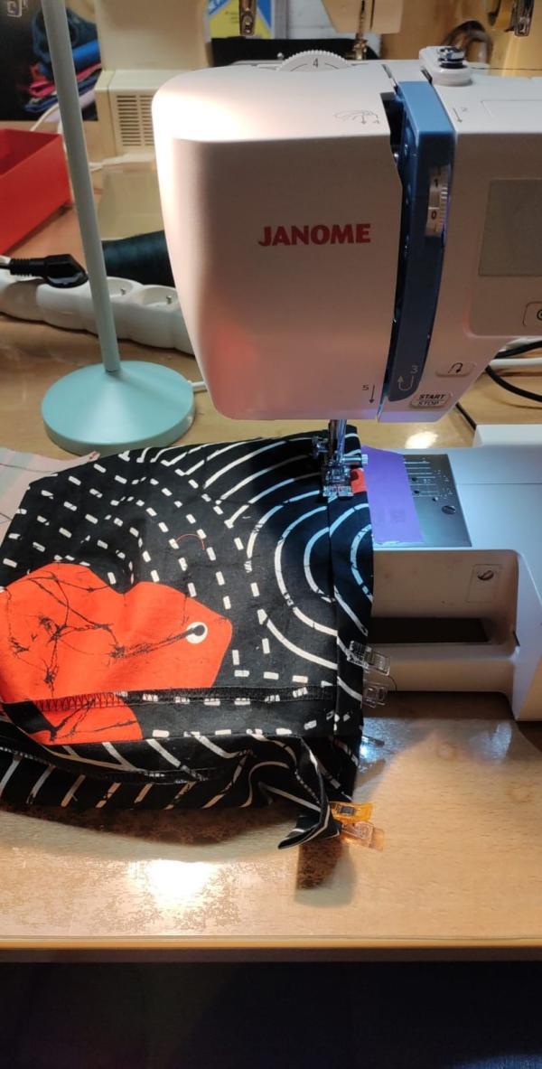L'artisane vous guidera alors pas à pas dans la réalisation des pièces du pochon, de la découpe à l'assemblage, en passant par la couture.