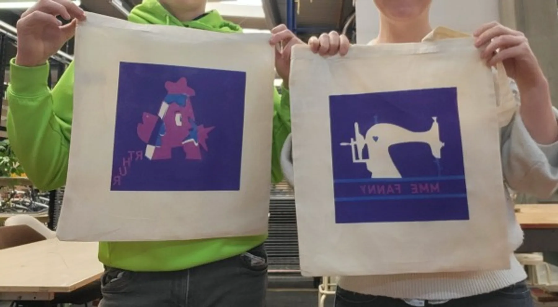 Ensuite, vous imprimerez vous-même votre dessin original sur un sac en coton, fourni lors de l'atelier.