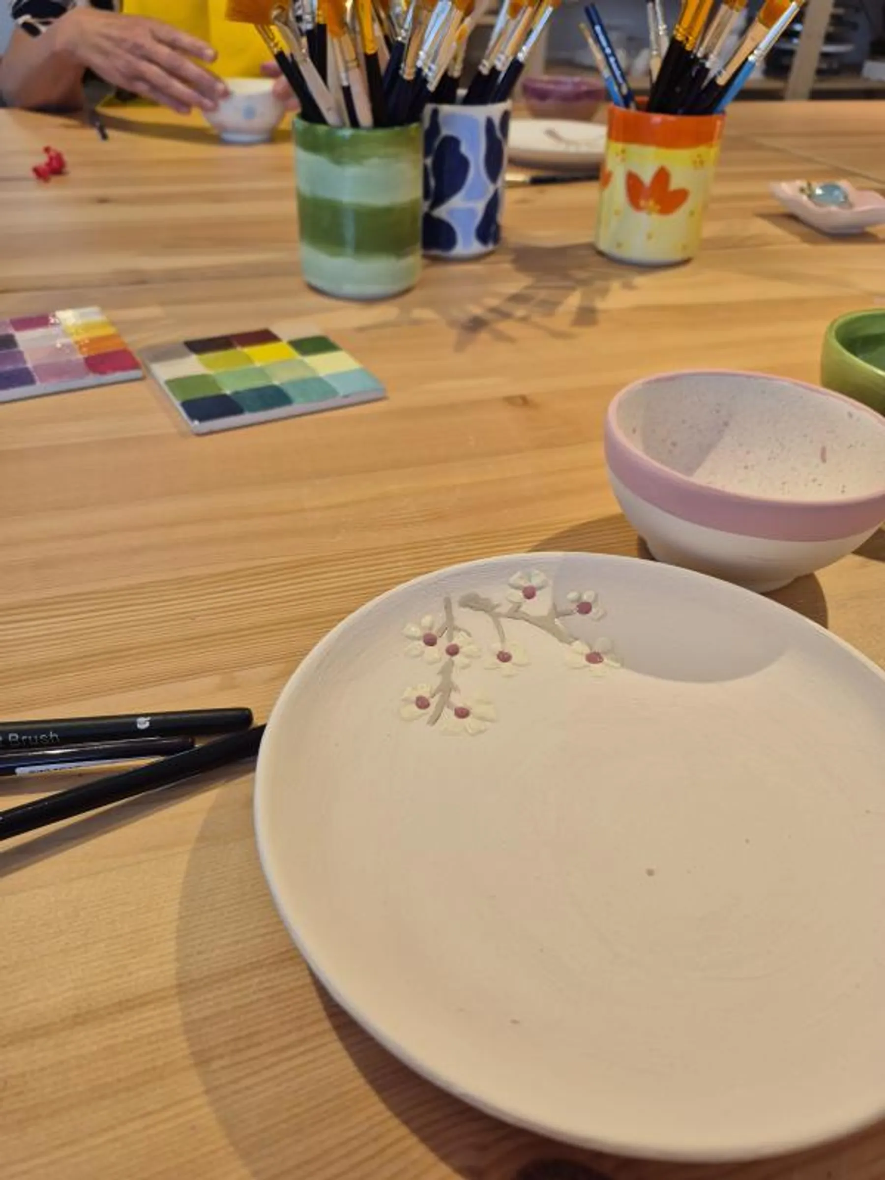 Lors de cette session, les participants choisiront une pièce à décorer parmi plusieurs options : assiette, bol, tasse, saladier, planche apéro ou set petit déjeuner. Ils auront accès à des engobes (argiles colorées), des pinceaux et de la peinture, ainsi qu’à des conseils pratiques pour les accompagner dans leur création.