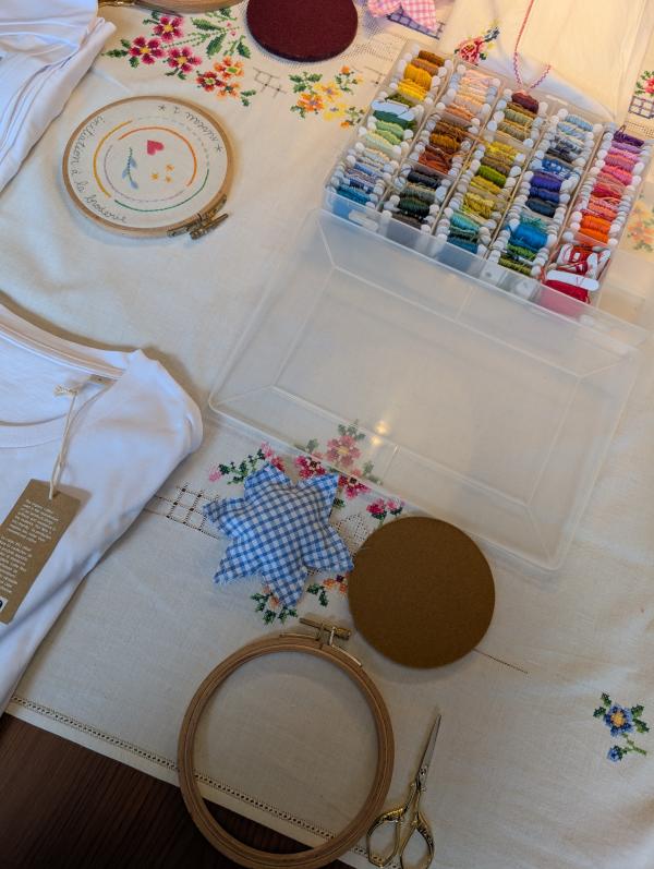 Super première expérience de broderie ! Pauline est à l'écoute et nous montre les différents gestes tout en nous laissant suivre nos aspirations et notre créativité. Tout ça dans une ambiance cozy et chaleureuse :) A faire sans hésiter !