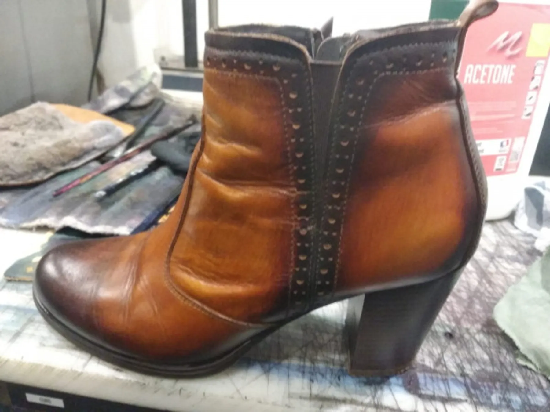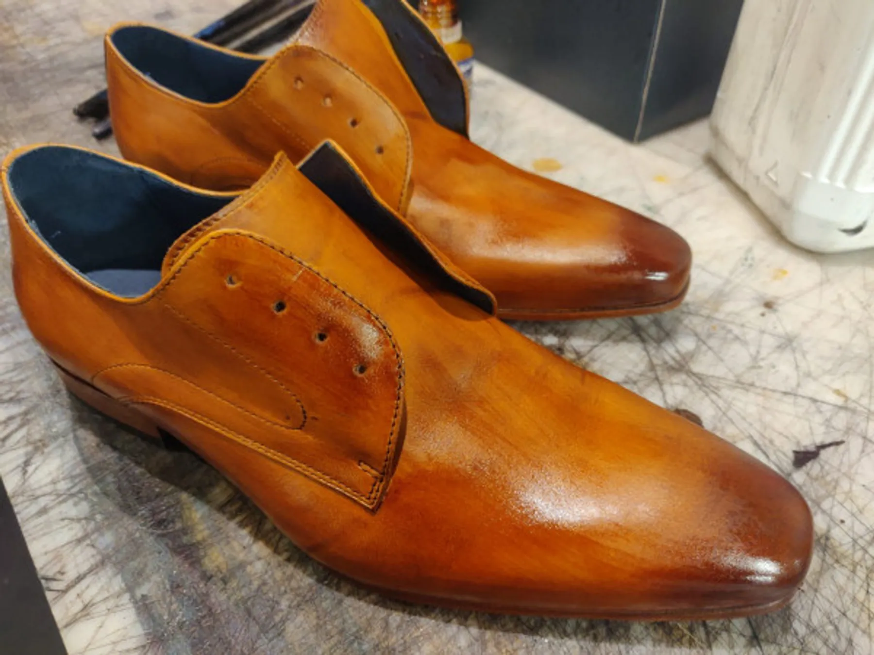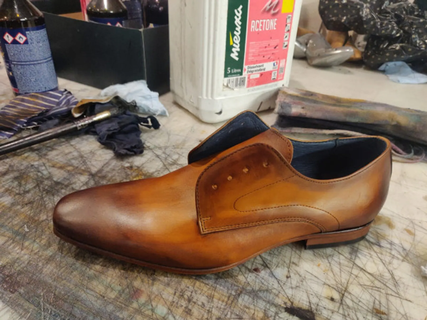 Une fois le dessin de la patine effectué, vous travaillerez les nuances et effectuerez les finitions. Bravo, vous avez maintenant une nouvelle paire de chaussures.