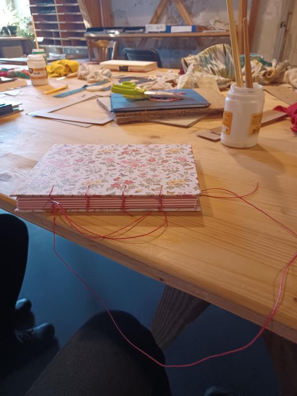 J'ai passé un très bon moment, et cet atelier m'a permis de réaliser un joli carnet avec une reliure copte. Merci beaucoup à Amandine.