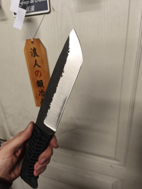 Ces 8h00 partagées avec Mathis m’ont permis de constater la complexité à fabriquer une lame forgée à la main en abordant entre autres la qualité des métaux, la forge, le détourage, le recuit, la normalisation, la trempe, le revenu mais aussi la paracorde. Mathis domine le sujet et partage passionnément son savoir et son enthousiasme pour la forge, particulièrement pour la technique ancestrale japonaise. Il démontre bien aussi son geste maîtrisé. J’ai passé un excellent moment en échangeant facilement sur ces thèmes mais aussi sur divers sujets abordés dans nos conversations. La réalisation d’un trés réussi couteau "Buchkraft" concrétise cette journée intéressante et fructueuse.
