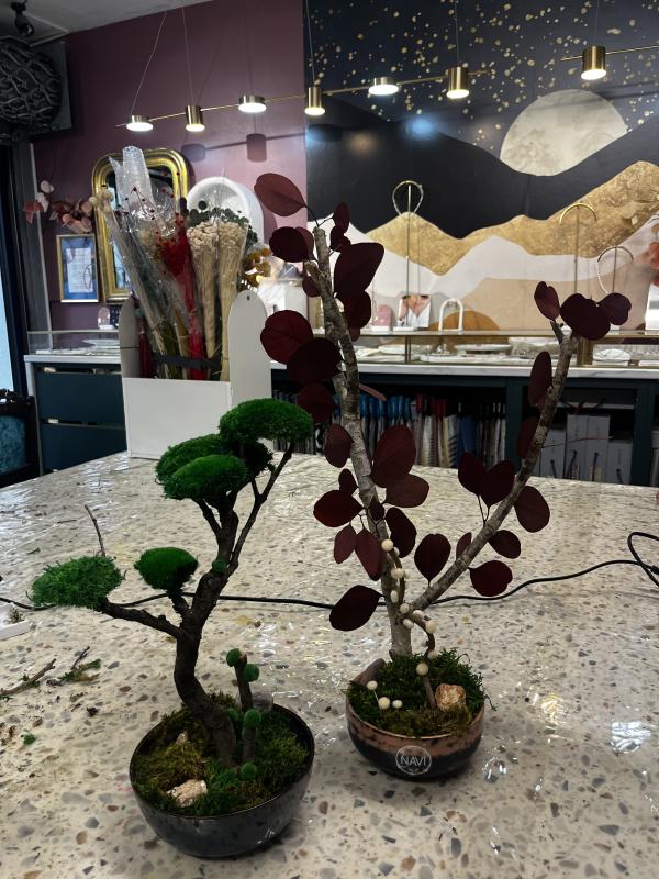Super moment créatif ! Beaucoup de choix pour réaliser son bonsaï éternel et des techniques très satisfaisantes. Merci pour cet atelier !