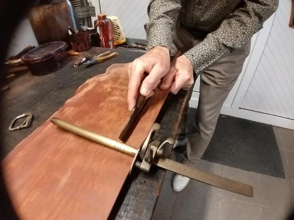 Passionné par son métier, il prendra le temps de vous présenter son travail, son atelier ainsi que ses créations. En amont, il faudra prévoir de porter des vêtements qui ne craignent rien. L'initiation débutera par une petite partie théorique pour faire un point sur la matière : il vous expliquera d'où elle vient et quels sont les différents types de cuir qu'il utilise.