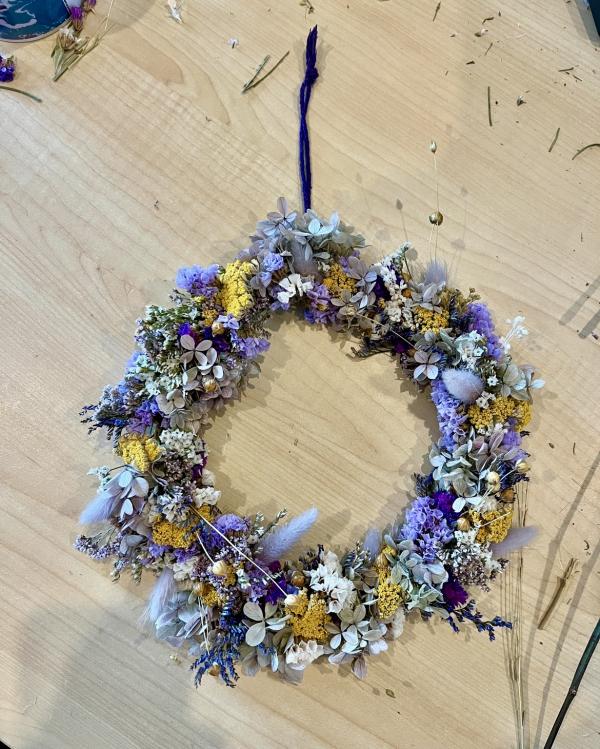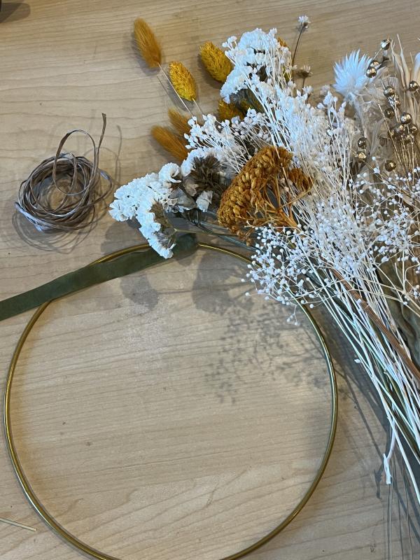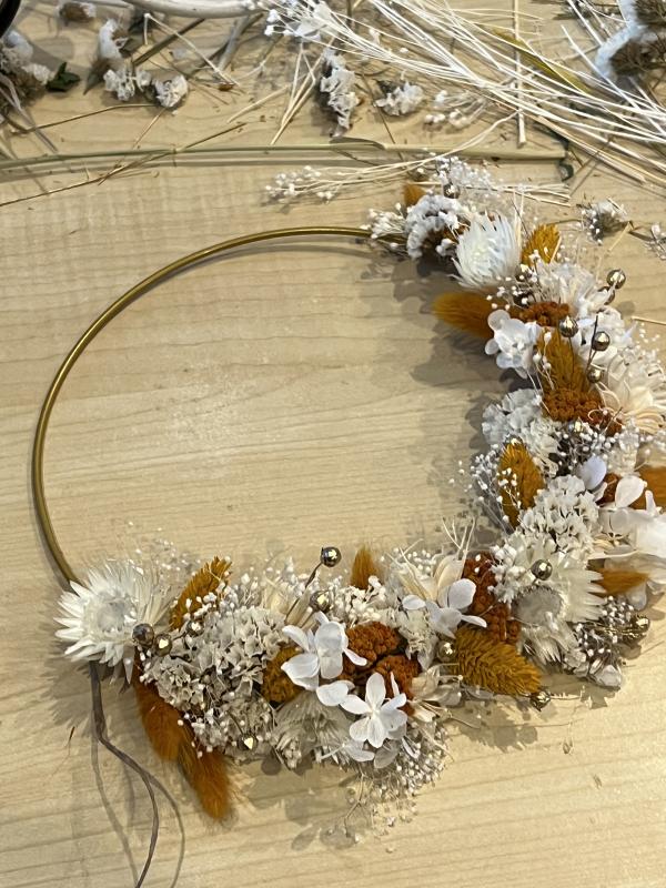 Initiez-vous à la composition florale et créez votre couronne de fleurs séchées avec Véronique, artisan fleuriste