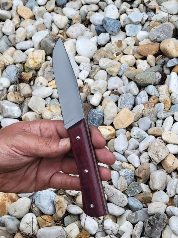 Ensuite, laissez libre cours à vos inspirations en choisissant votre essence de bois qui donnera vie au manche de votre couteau. La découpe de l'acier donnera forme à la lame, suivie du détourage et de l'émouture pour affiner votre création.