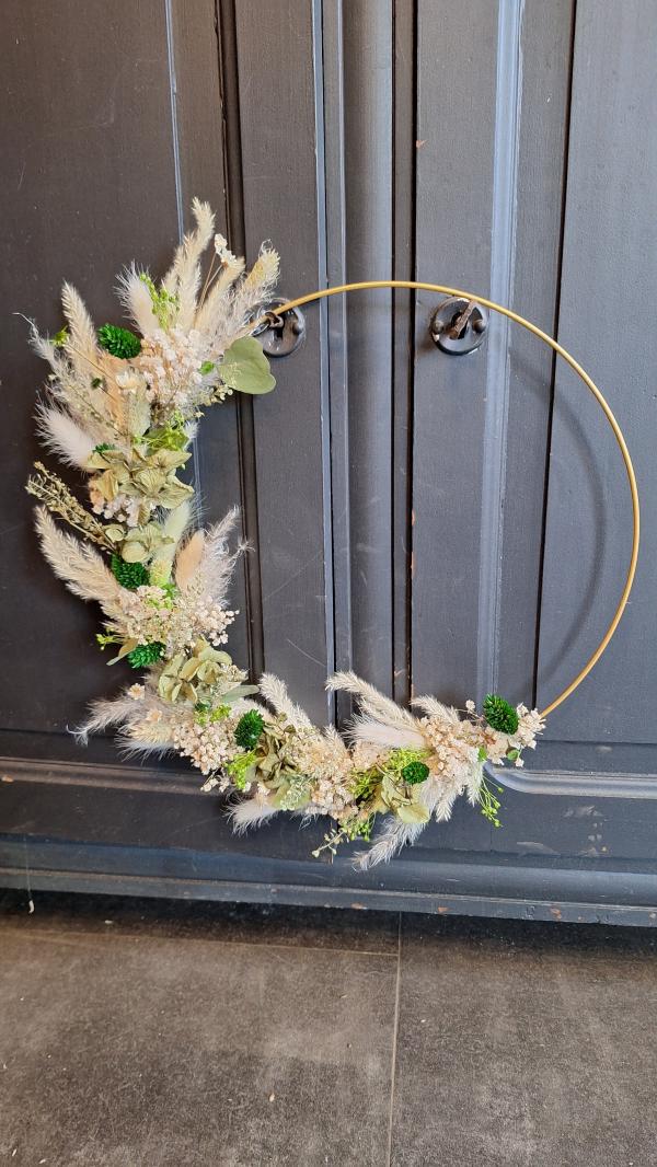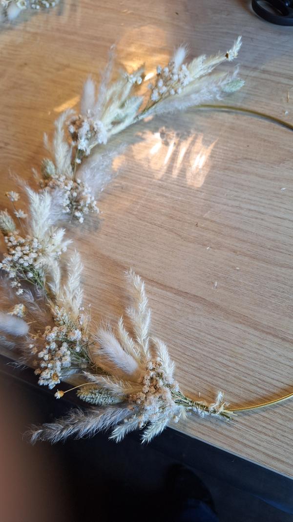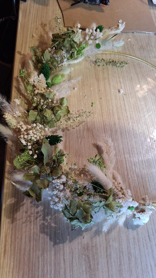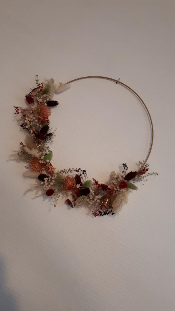 Vous repartirez ainsi avec votre couronne de fleurs séchées unique et personnalisée, prête à ajouter une touche à votre intérieur.