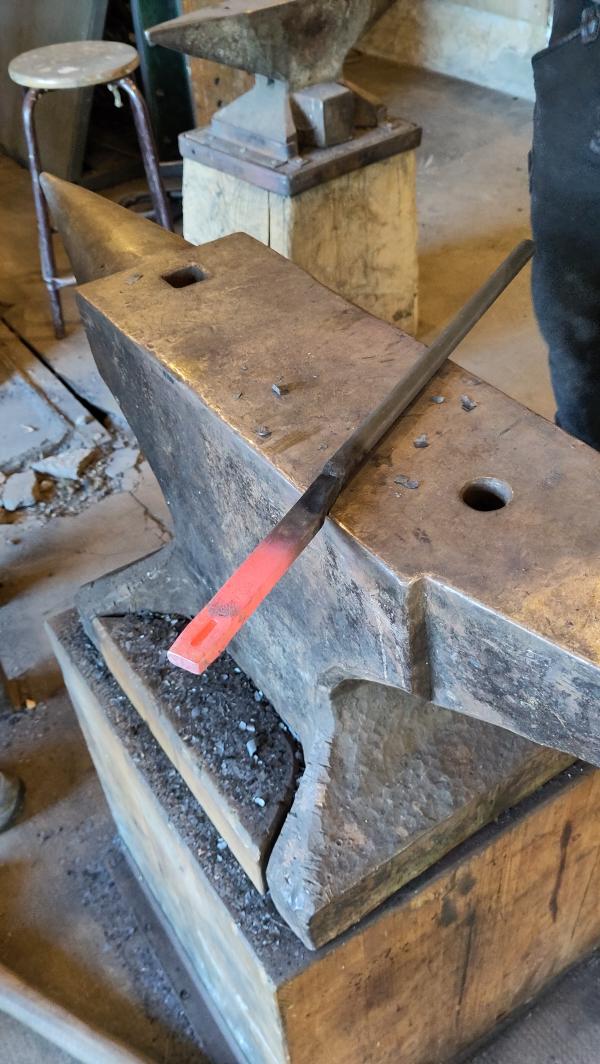 Après une brève introduction sur l'histoire de la forge et des règles essentielles de sécurité, vous serez initié aux outils emblématiques du forgeron : le marteau, l'enclume et la forge à charbon. Vous commencerez à chauffer et manipuler le métal, tel qu'une barre d'acier, la préparant à être forgée.