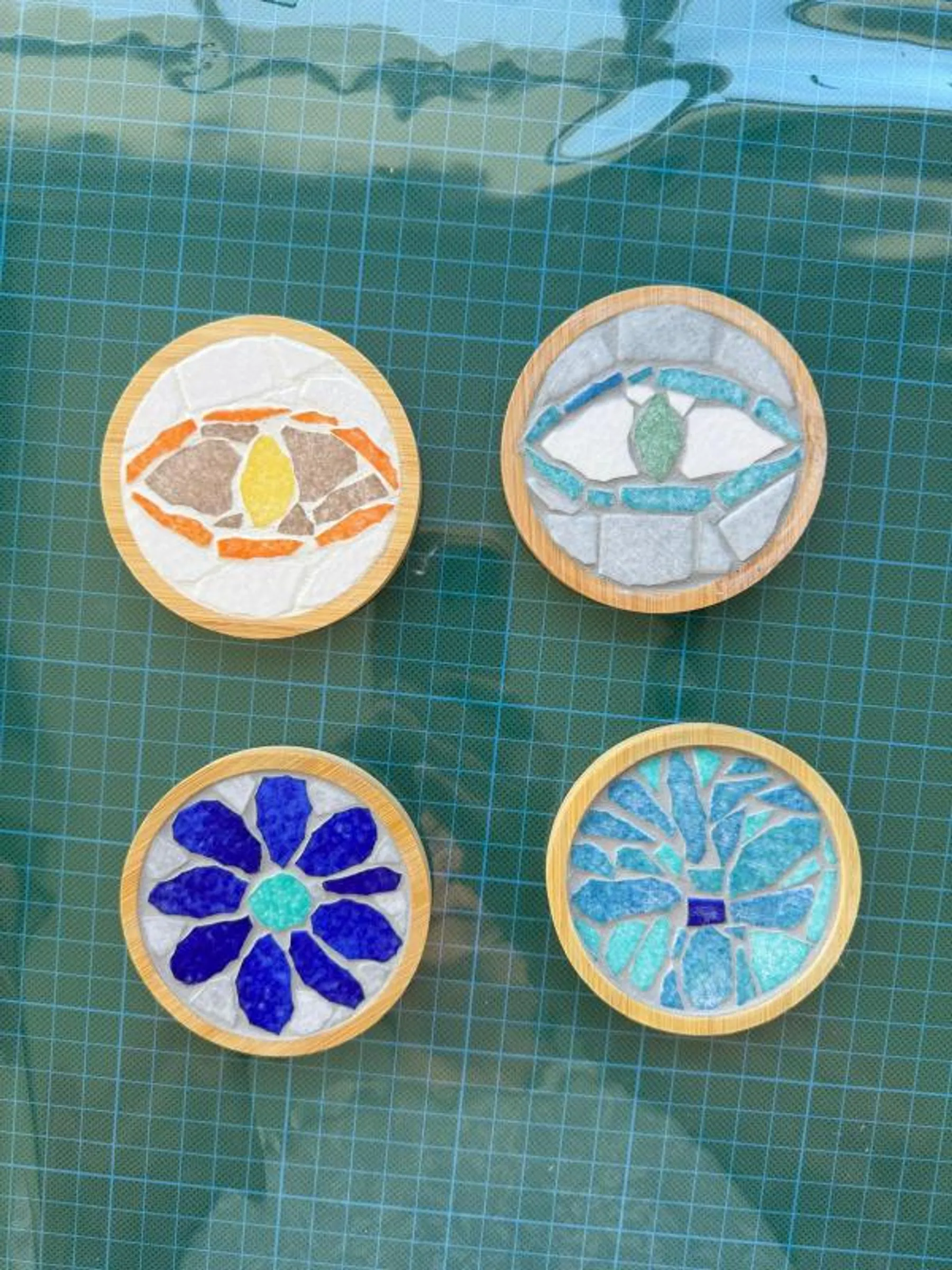 Au terme de l'atelier, vous repartirez avec vos trésors en mosaïque, témoignages de vos moments de créativité partagée en famille !