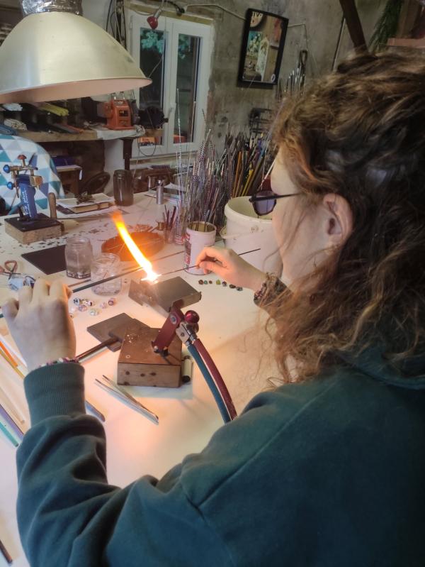Un bien bel atelier effectué en compagnie de Gaëlle. Un peu d'appréhension vite effacé sur le bon usage du chalumeau, et même en étant néophyte on réussit à faire des perles de différentes formes, avec différents effets. Le verre est une matière très malléable à la bonne température. Le matériel mis à disposition est bon, les explications très didactiques, Gaëlle est présente et montre autant que nécessaire. Un très bon moment.
