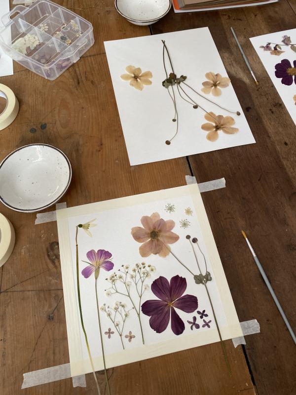 Vous découvrirez comment composer harmonieusement votre herbier sur papier, en apprenant à disposer les fleurs avec sensibilité. Toutes les fleurs pressées, issues exclusivement de ses cultures ou de ses cueillettes locales, seront à votre disposition pour réaliser votre création.