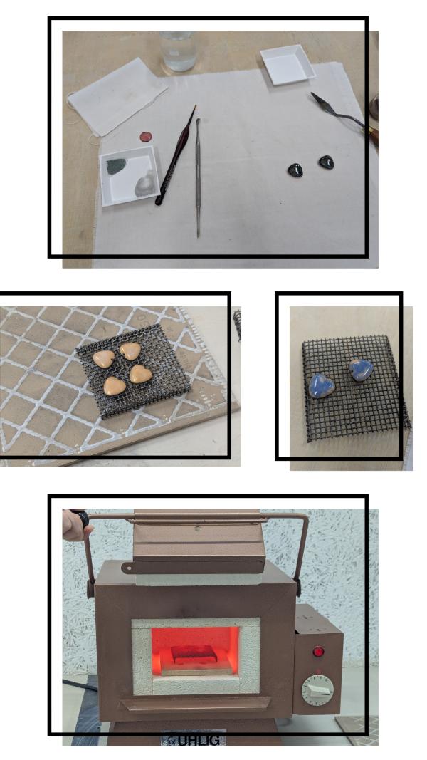 Au cours de cet atelier, vous aurez l'occasion de manier les différents outils de l'émailleur : le pinceau, la spatule à double embout pour prélever l'émail dans les petites coupelles, ou encore le four pour cuire l'émail.