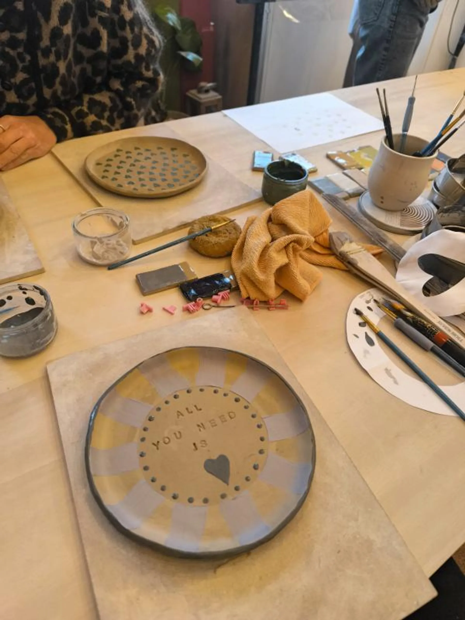 Elle vous accompagnera durant toute la création de votre atelier. Elle commencera tout d'abord par vous expliquer la technique de la plaque en céramique afin de pouvoir modeler vos assiettes.