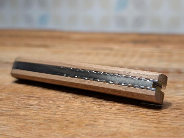 J'ai adoré par cette journée d'initiation à la coutellerie sous la guidance de Jean-Marie. Bien que son intérêt pour cet art soit relativement récent, il en maîtrise pas moins chaque étape de la réalisation d'un couteau. Après une introduction sur le vocabulaire et les pièces constitutives, place à la pratique : dans son atelier, il dévoile les subtilités du travail du bois ou du métal pour chaque élément. Pédagogue et patient, il vous accompagne dans la reproduction de ses gestes. Ce qui m'a particulièrement plu, c'est son approche à la fois bibliographique et expérimentale, une véritable démarche d'ingénieur, loin de son parcours professionnel. Elle illustre une soif d'apprendre et d'optimiser chaque procédé. Si vous y êtes sensibles, Jean-Marie saura vous en parler avec passion.