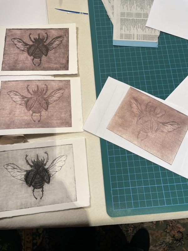 Expérimentez l'art de la gravure sur tetrapack et réalisez vos trois superbes estampes avec Lucie, graveuse
