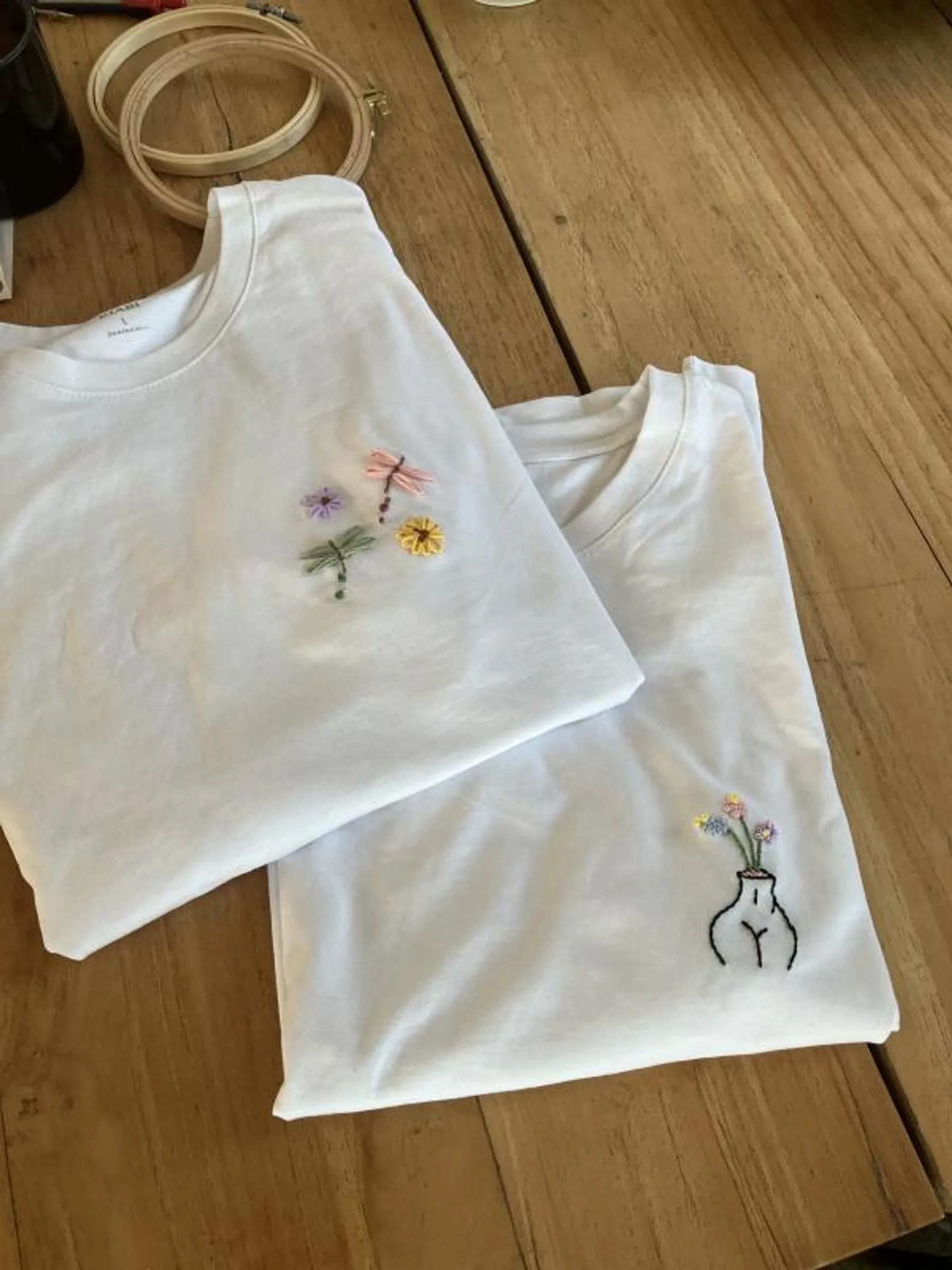 Durant 4 heures, explorez l'art de la broderie à la main, tout en offrant une nouvelle vie à vos vêtements. Vous aurez l'occasion d'apporter votre propre pièce au choix :  qu'il s'agisse d'un t-shirt, d'un sweat, d'une chemise, voire d'un adorable body pour bébé. Si vous n'en possédez pas, n'hésitez pas à prévenir l'artisane à l'avance, qui aura une large sélection de t-shirts à vous proposer !