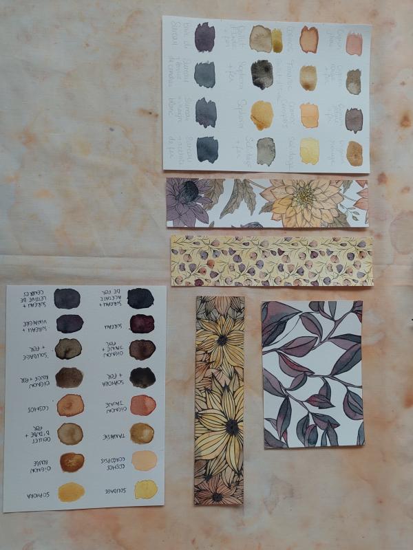 Belle découverte des encres végétales. Noemie est très sympathique. Explications détaillées du processus de création des encres et réalisation d’un nuancier. Mise en pratique par l’application des encres sur des cartes ou marque-pages au choix. On repart avec ses créations !