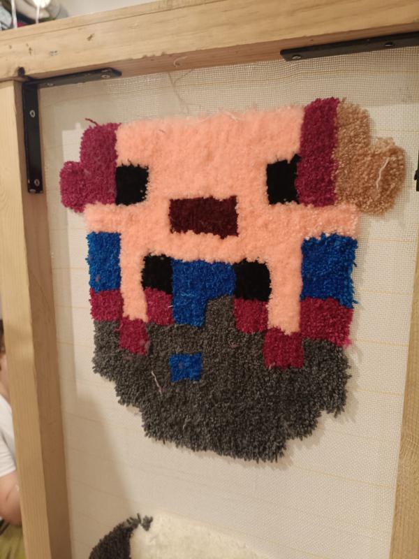 Atelier duo réalisé avec mon filleul, grace aux conseils nous avons pu faire le dessins souhaité (pas de détails fin). Après les consignes de sécurité et une explication claire nous avons pu nous initier au tufting ! Mon filleul en ressort très content et emerveillé. Maintenant, il ne reste qu’a attendre pour récupérer le chef d’oeuvre :)