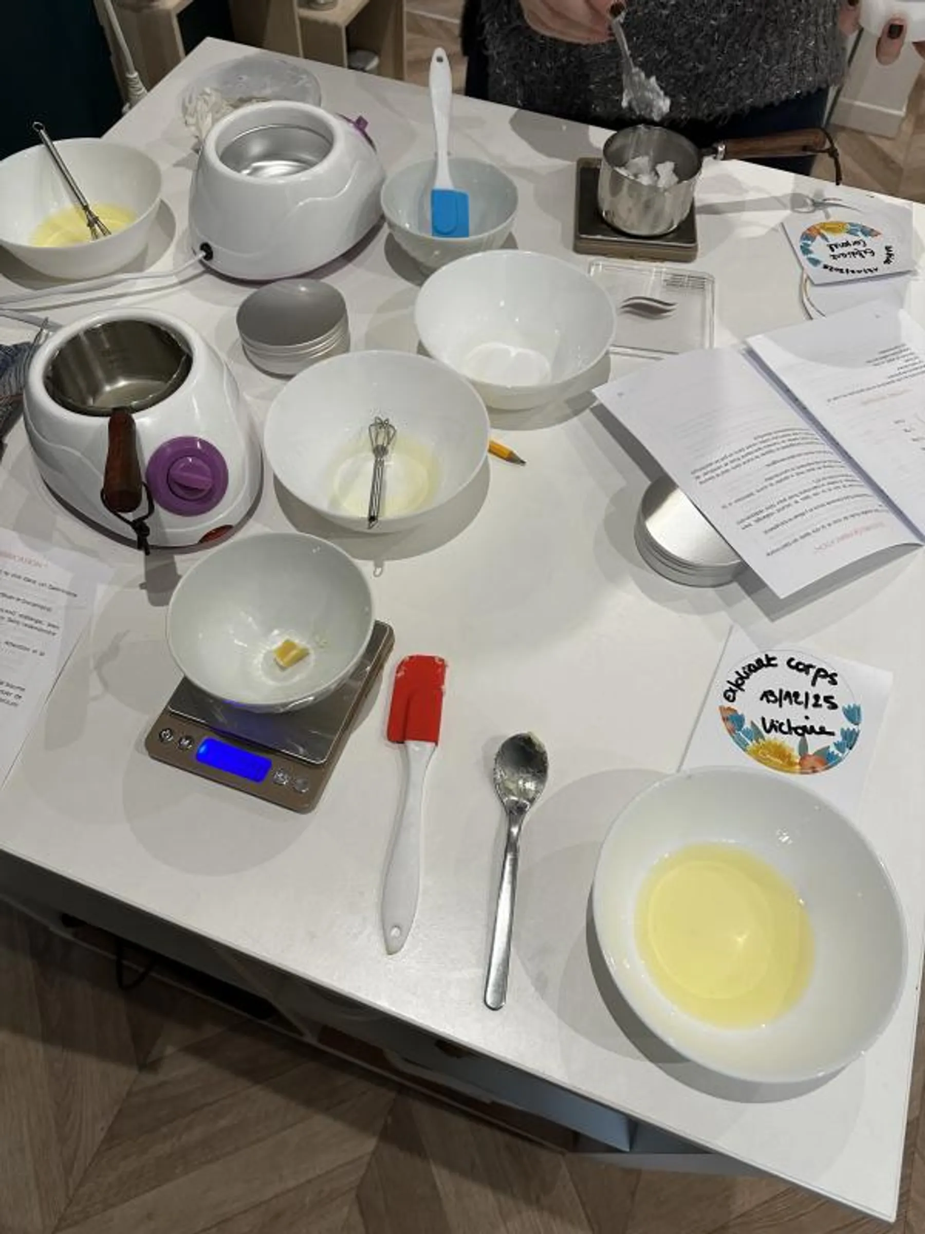 L’expérience est géniale ! Nous avons toutes les explications nécessaires pour réaliser nos soins mais aussi pleins d’autres sur la cosmétique naturelle. Nous repartons avec un livret rempli de conseils mais aussi des recettes pour pouvoir refaire les soins chez nous. L’atelier se passe en petit groupe dans une très bonne ambiance. Je recommande !