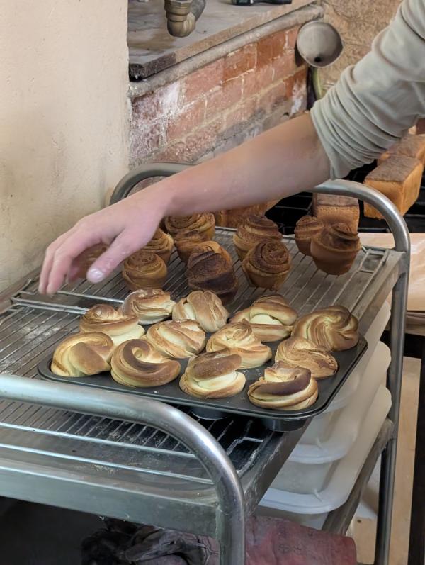 J'ai passé un moment "hors du temps" en façonnant pains cruffins et cookies. Fours et pétrins industriels s'abstenir. ici le pain est cuit dans un fournil à bois et pétri à la main. j'ai découvert que le pain chantait. De retour à la maison, la dégustation a été très appréciée par tous. Elise est passionnée et pédagogue. les recettes sont abordables et l'atelier se fait dans une ambiance très conviviale. Merci Elise pour ce moment.
