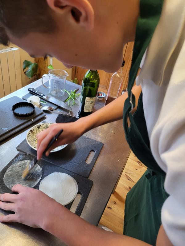 Puis, direction la cuisine ! Guidé par Elliot, vous réalisez un menu gastronomique de A à Z, en apprenant des techniques simples et efficaces, accessibles à tous. Chou farci, fondue de poireaux, lotte au curry et mousse de cresson, poêlée de Saint-Jacques ou rouget écaille et pommes de terre… selon la saison et l’inspiration du jour, vous préparez un plat et un dessert dignes d’un restaurant. Des démonstrations ponctuent l’atelier, mais c’est surtout en mettant la main à la pâte que vous progressez.