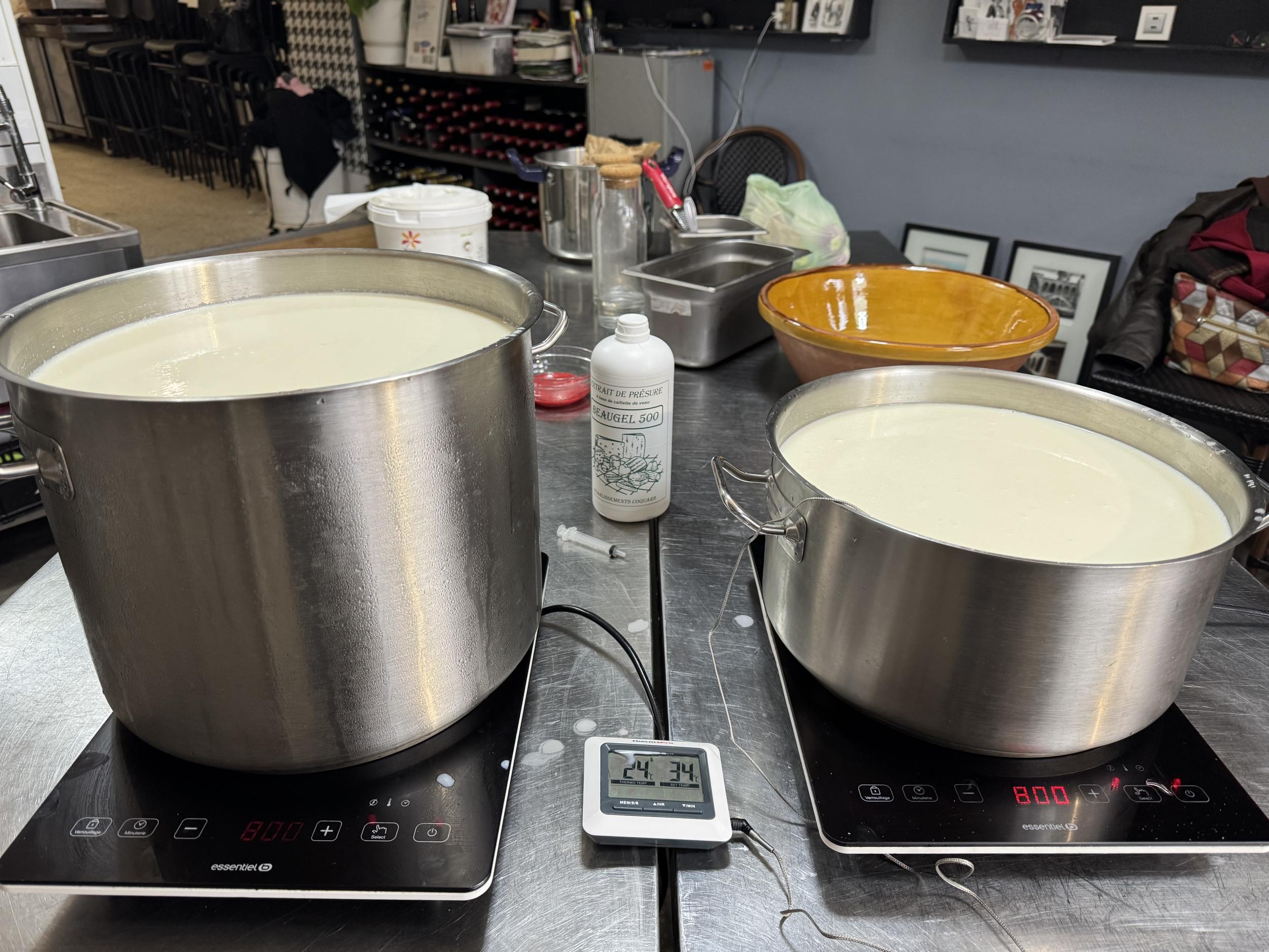 • Découverte des matières premières : découvrez un lait cru de vache et de chèvre, issu d’une production locale respectueuse du bien-être animal et de l’environnement. Fanny vous explique l’importance de la qualité du lait dans la fabrication du fromage.
