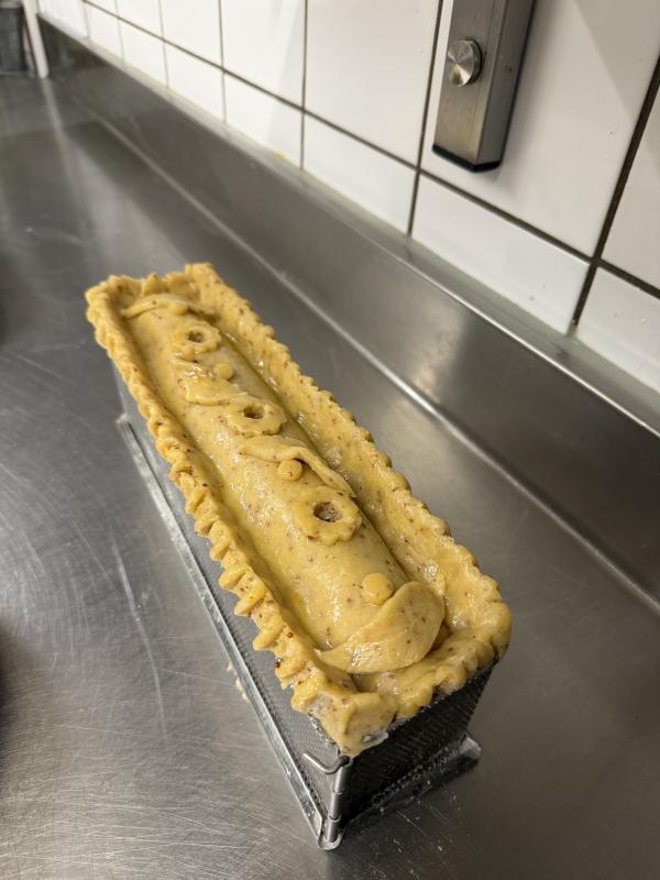 L'étape suivante concernera le montage du pâté en croûte, où vous assemblerez la farce dans la pâte, avant de refermer et décorer le tout.