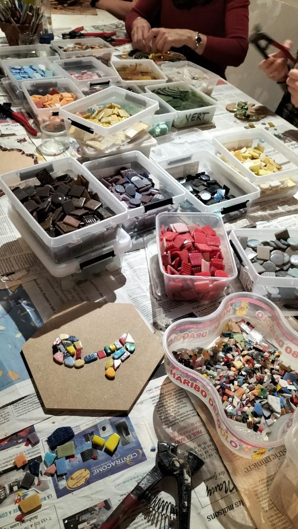 Découverte pour cette initiation à la mosaïque 3 heures vite passées Et on repart avec son "oeuvre"